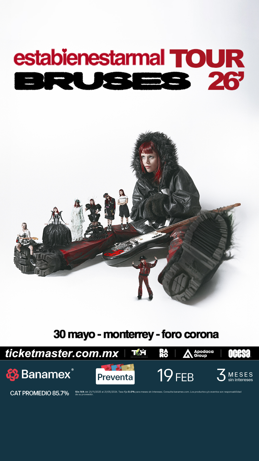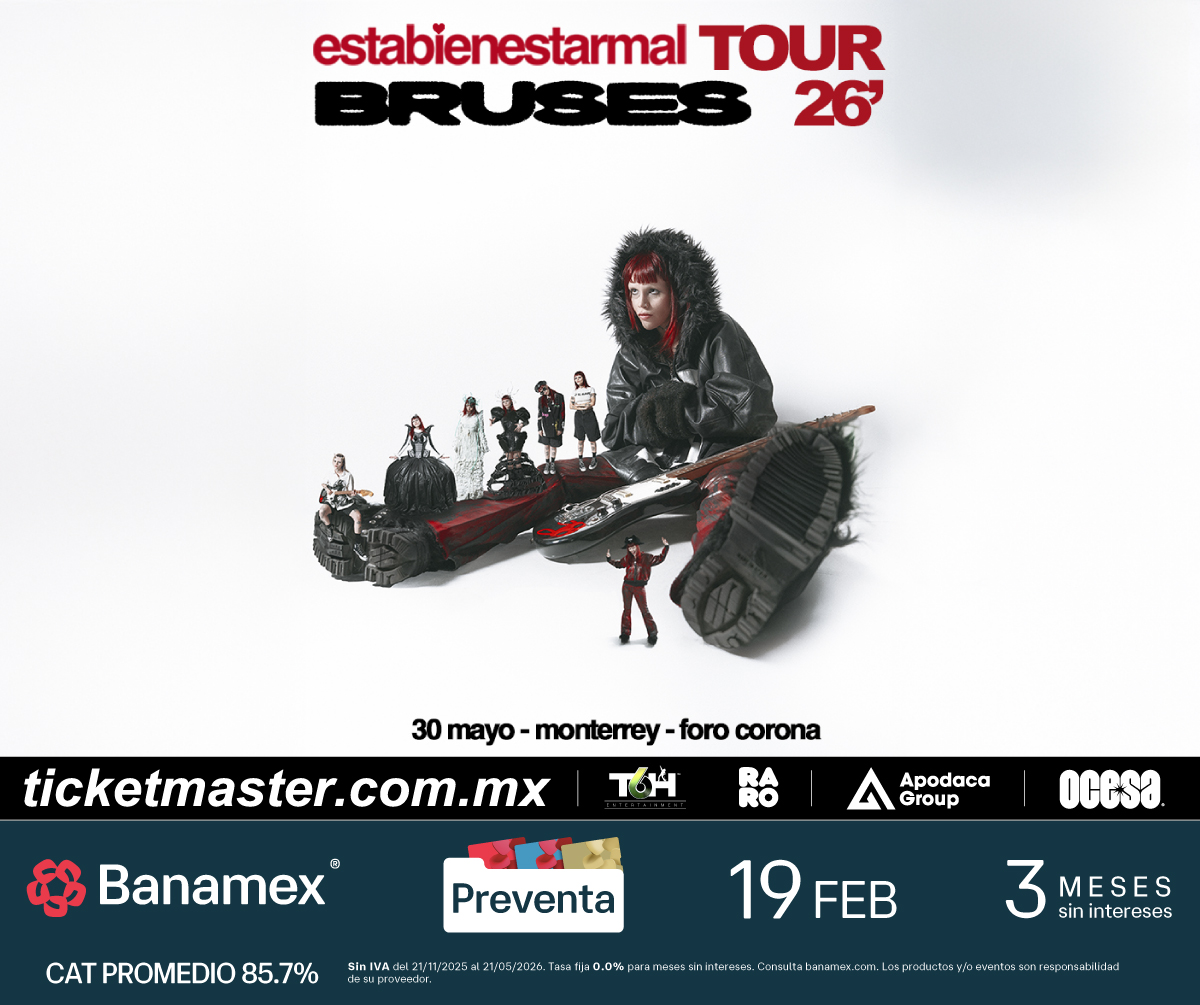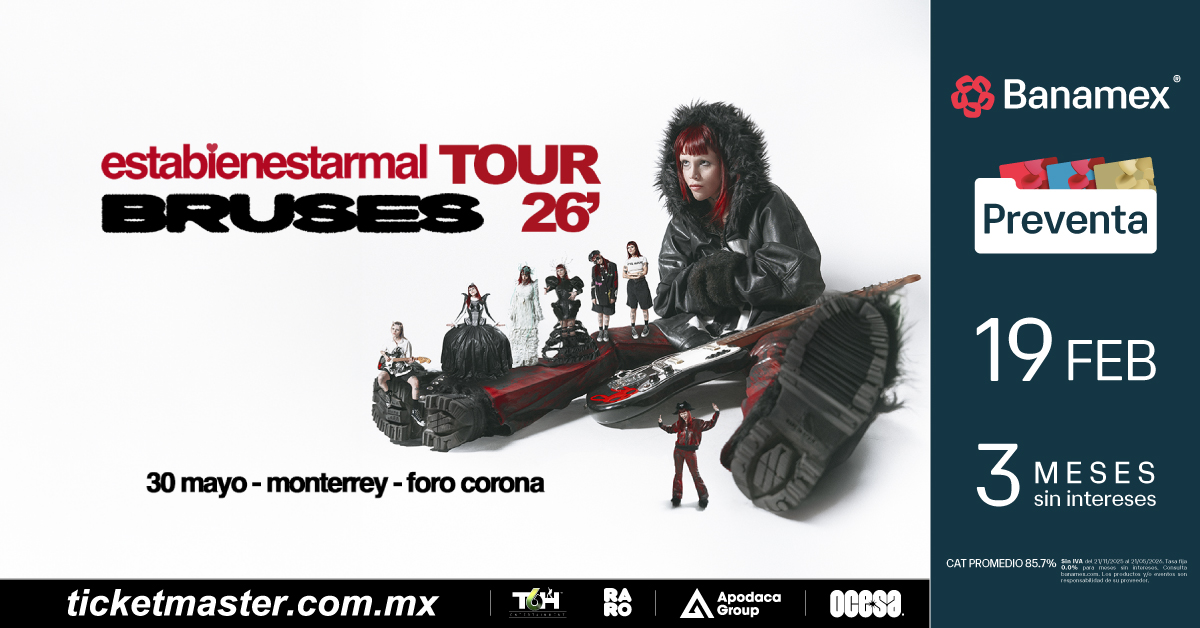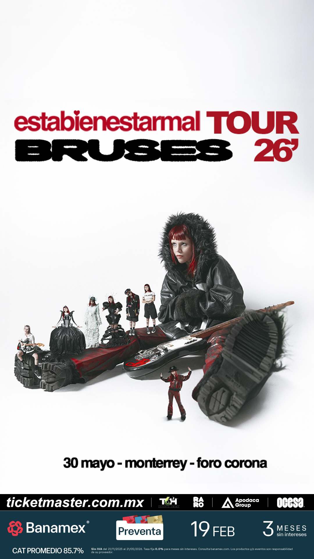 Acompaña a Bruses en este viaje de vulnerabilidad y corea con ella las canciones que la ayudaron a sanar. Adquiere tus boletos en la Preventa Banamex el 18 de febrero a través de Ticketmaster, y la Venta General estará disponible un día después.