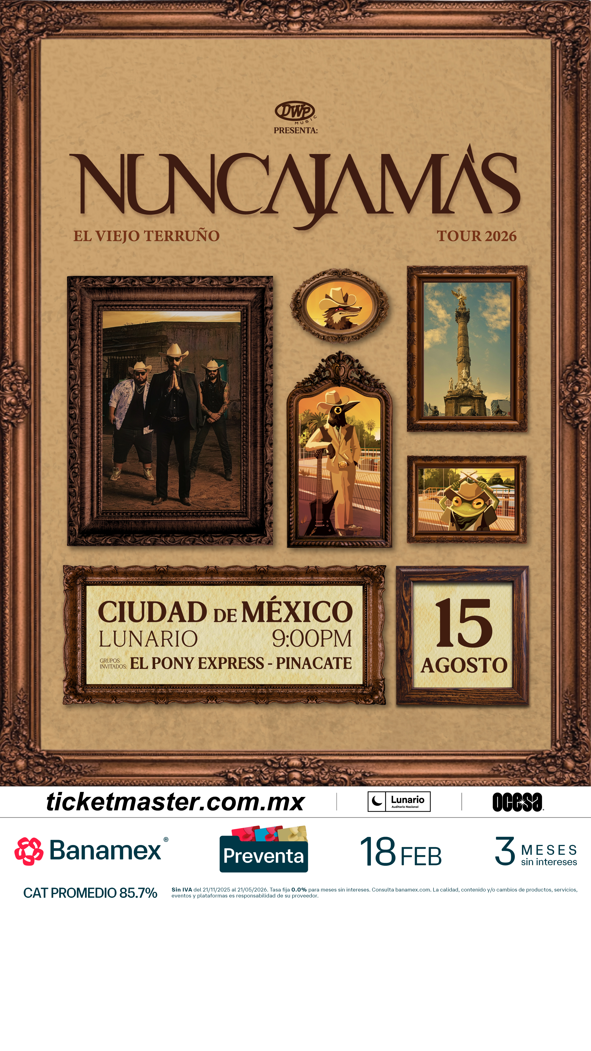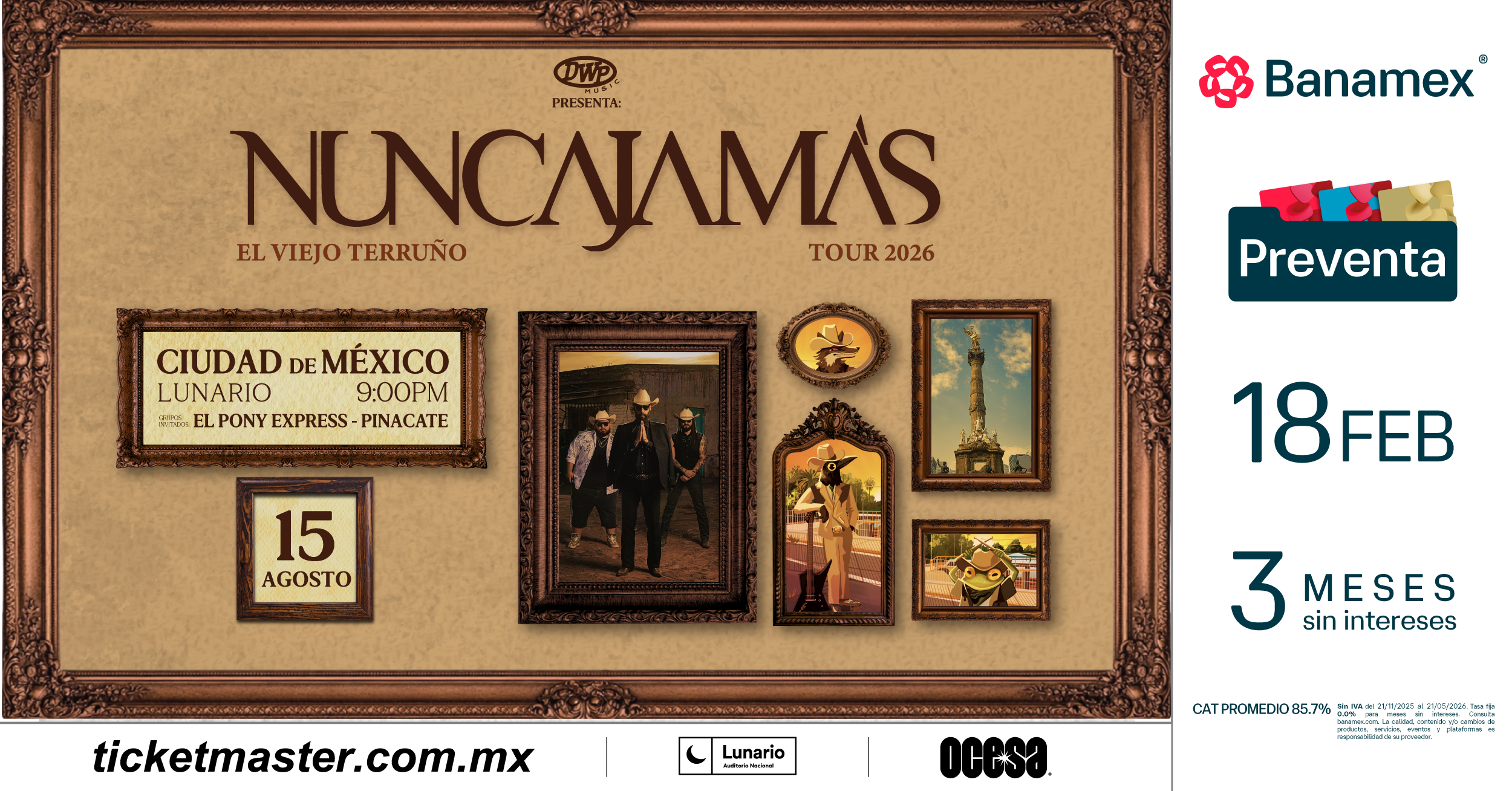 Nunca Jamás llegará al Lunario del Auditorio Nacional el próximo 15 de agosto de 2026, para convertirlo en el escenario ideal del rock agropecuario, una fusión poderosa que combina la energía del rock con los ritmos norteños y la banda sinaloense. Su propuesta, auténtica y profundamente ligada a las raíces del noroeste mexicano, ha transformado cada una de sus presentaciones en una celebración eufórica donde el público vive la música con intensidad total.