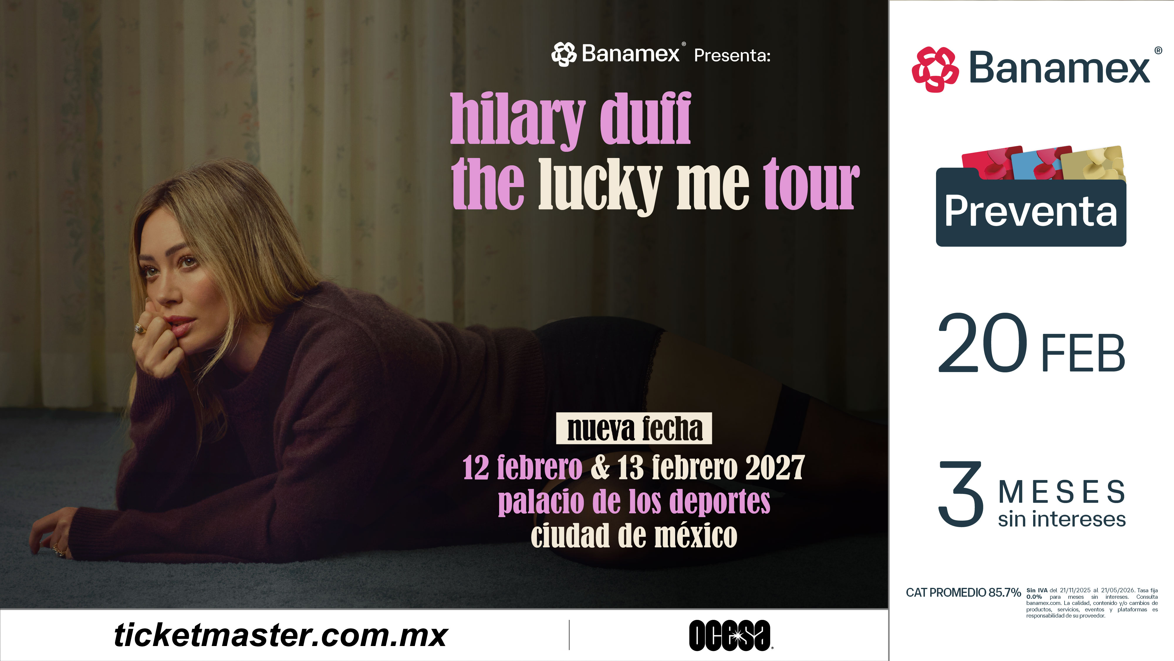 Preventa Banamex: 20 de Febrero, 11:00 a.m.
