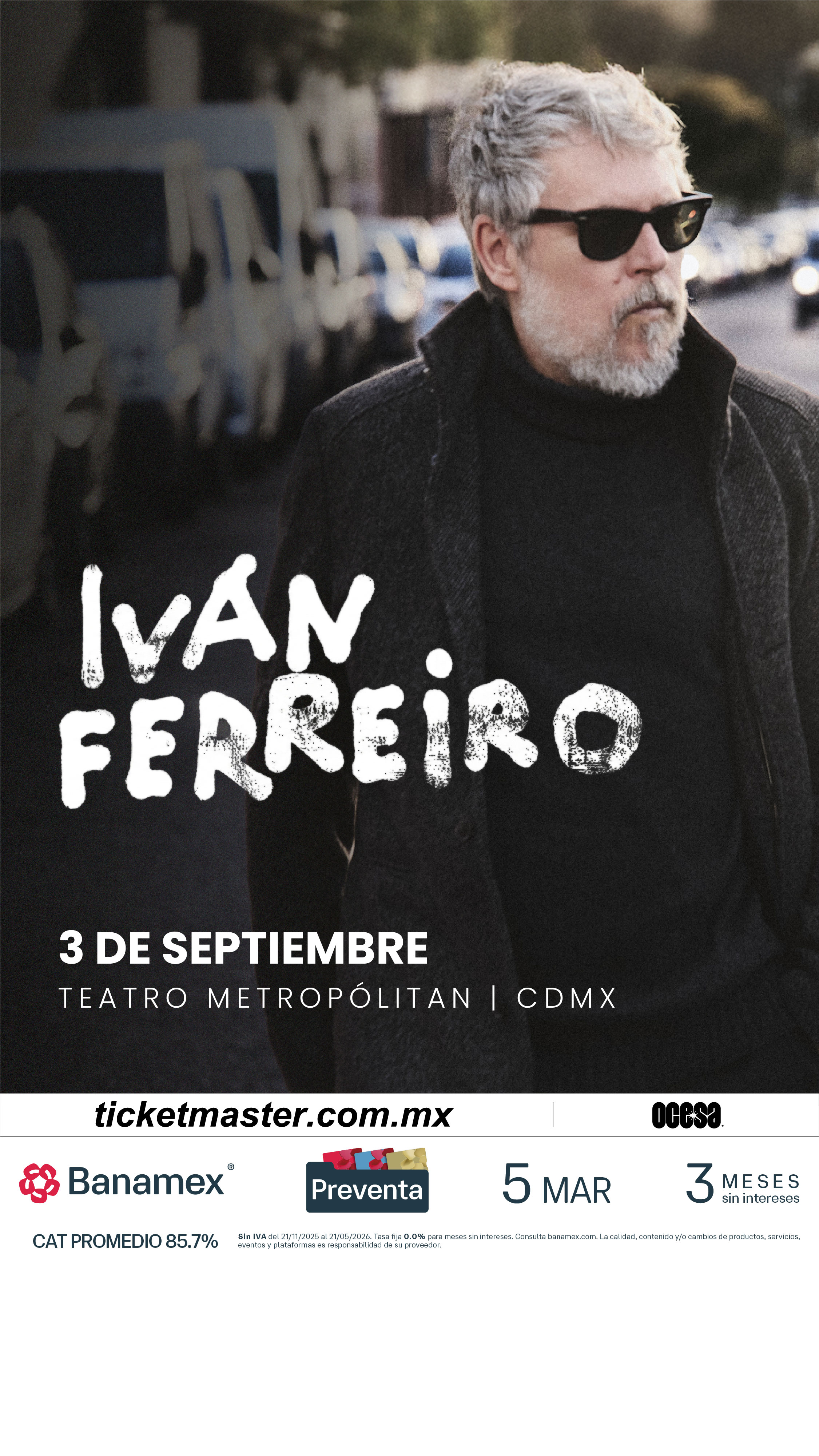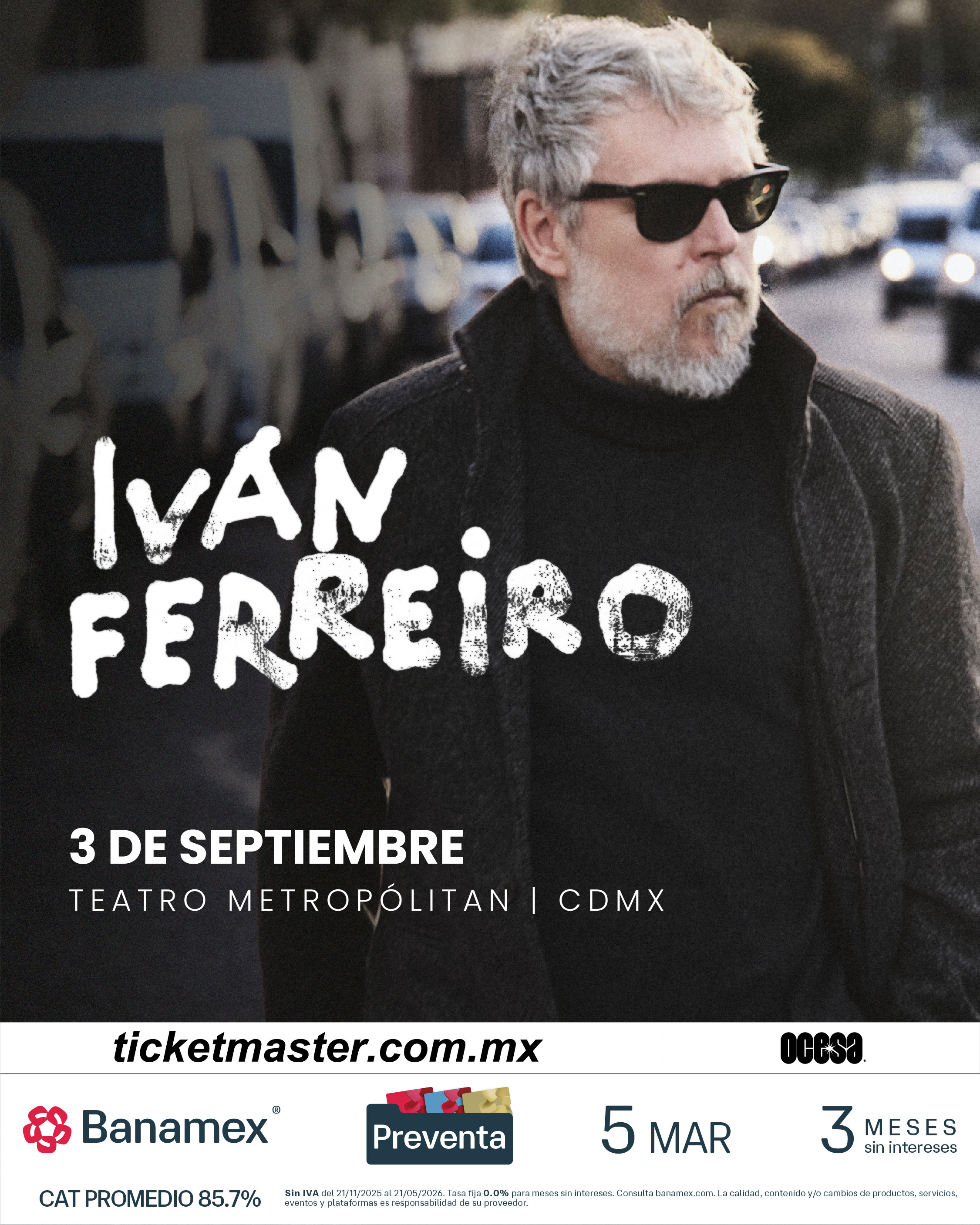 Como parte de la gira Hoy x Ayer, Iván Ferreiro pisará el Teatro Metropólitan para festejar con el público mexicano estos 35 años de carrera. Esta gira fue anunciada oficialmente en 2025 e incluye un recorrido por las canciones más emblemáticas de toda su trayectoria, desde sus inicios con Los Piratas hasta sus trabajos más recientes en solitario.