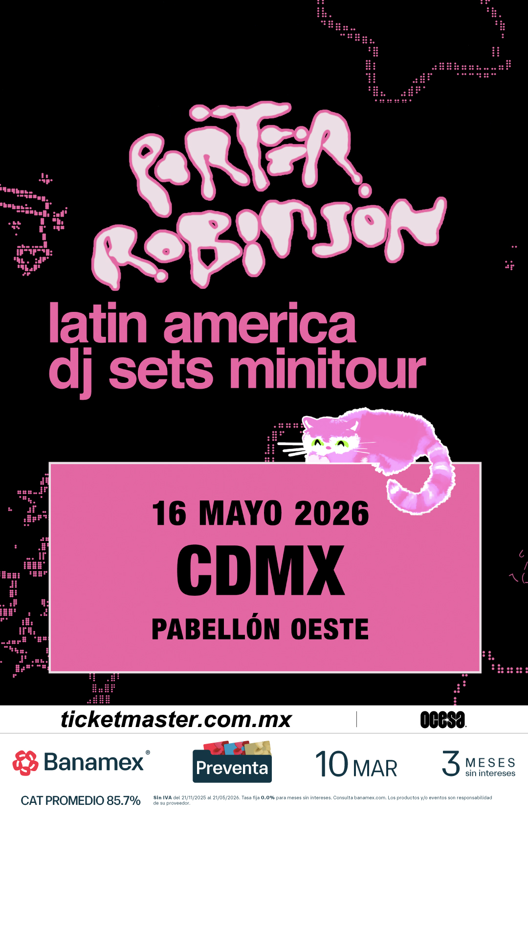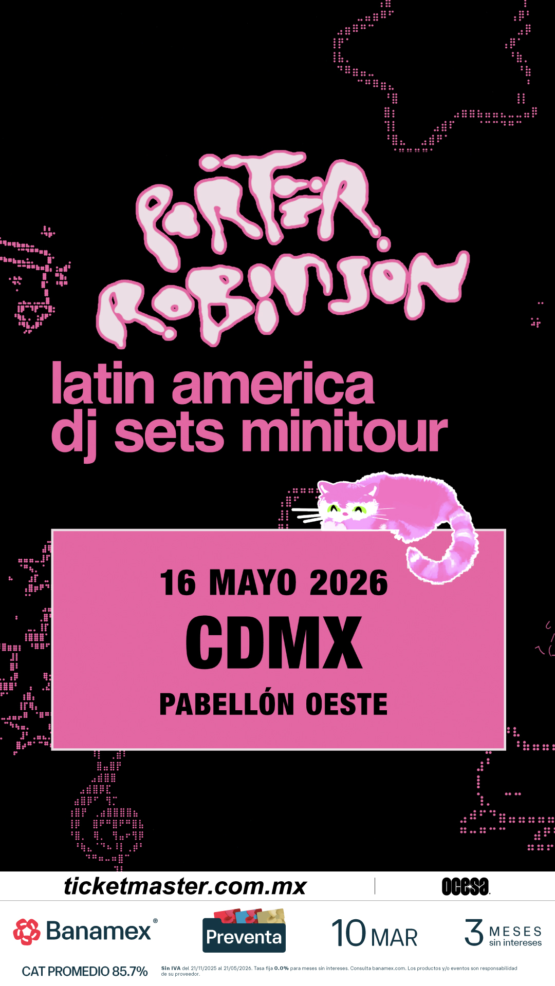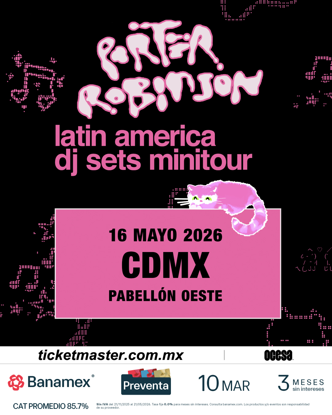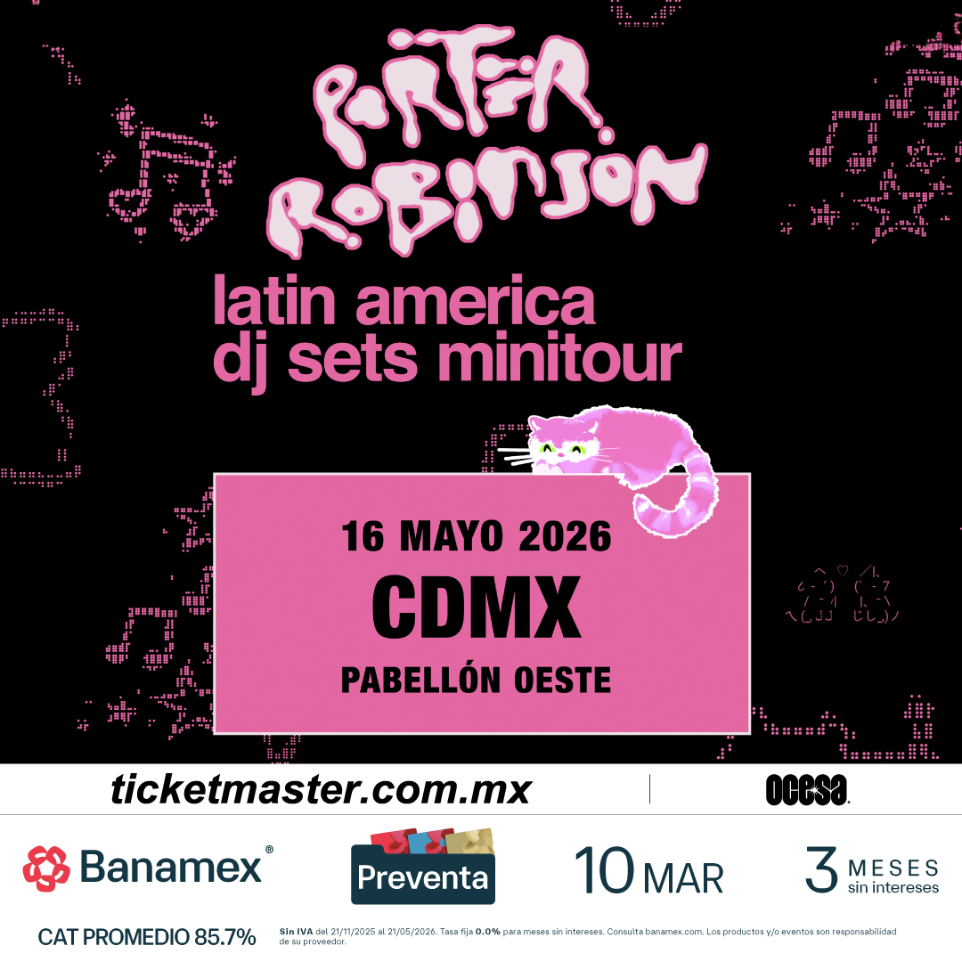 El reconocido productor, DJ y cantante, Porter Robinson, uno de los artistas más influyentes del panorama electrónico global, se presentará en el Pabellón Oeste para presentar un show único en su especie. Después de conquistar el Corona Capital en el 2024 y del lanzamiento de su aclamado álbum Smile! :D en el mismo año, el artista continúa consolidando su impacto con presentaciones que han reunido a miles de fans alrededor del mundo.