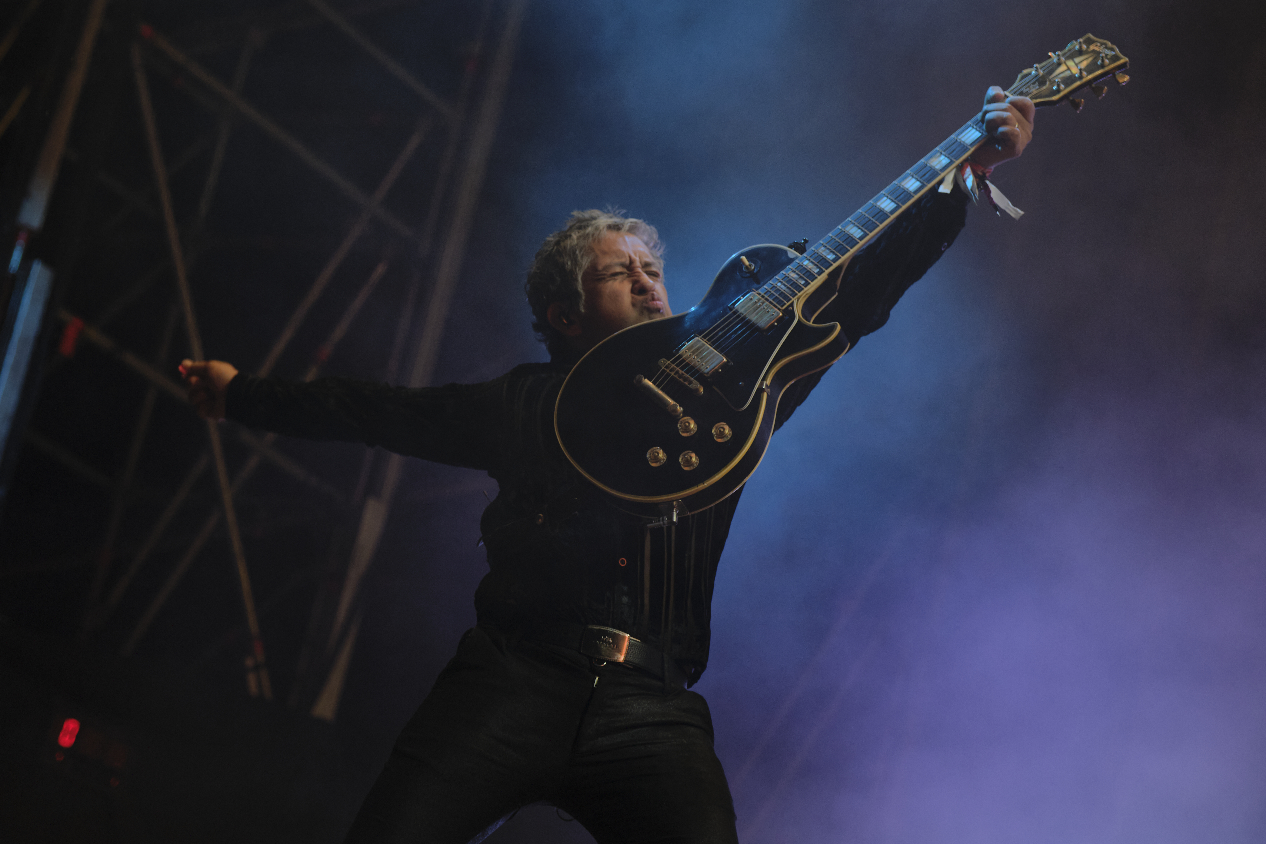 La noche se vistió de gala con la presencia de su invitado especial, el multifacético Jay de la Cueva, quien hizo retumbar su guitarra en las canciones “Punk-O” y “Ciudad de la Esperanza”