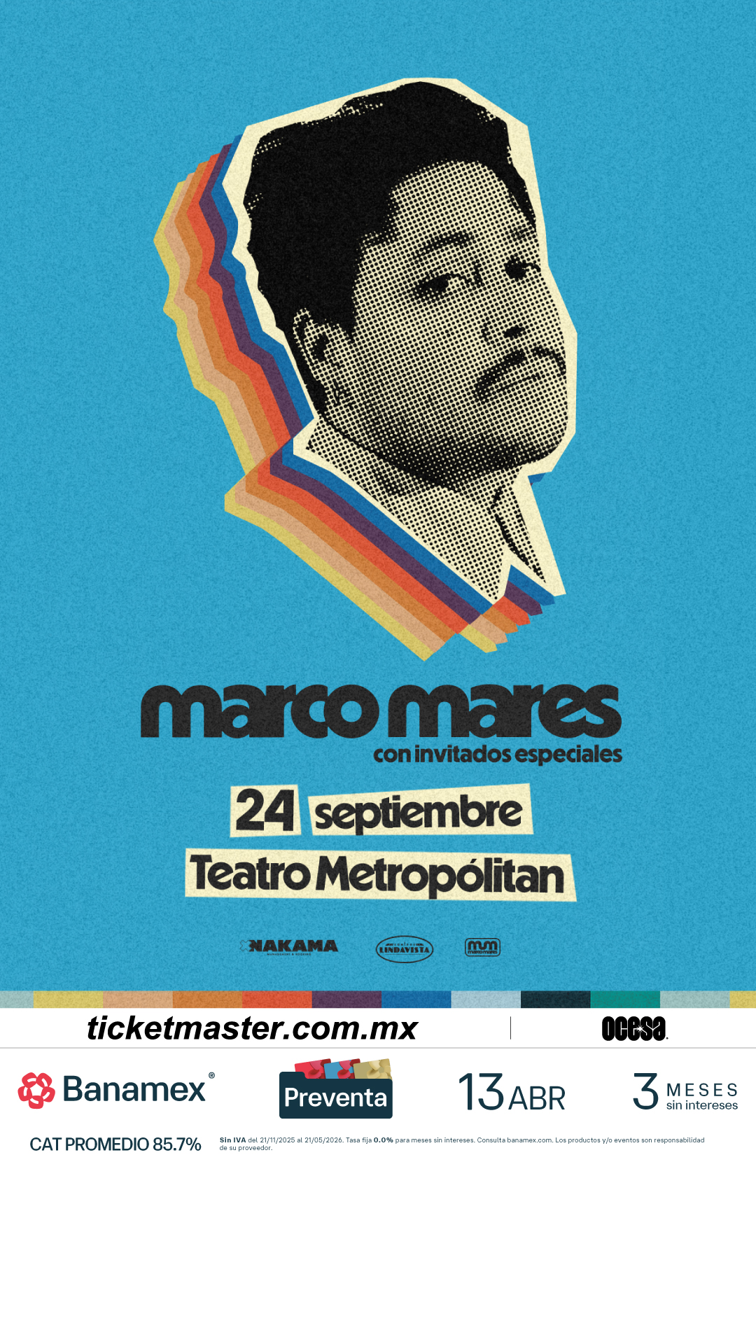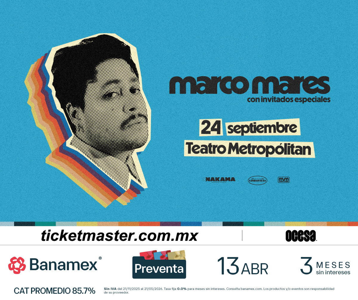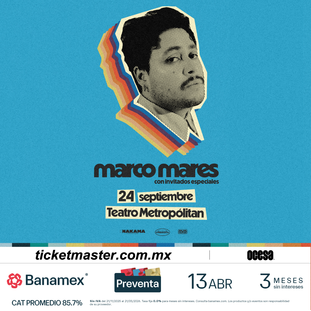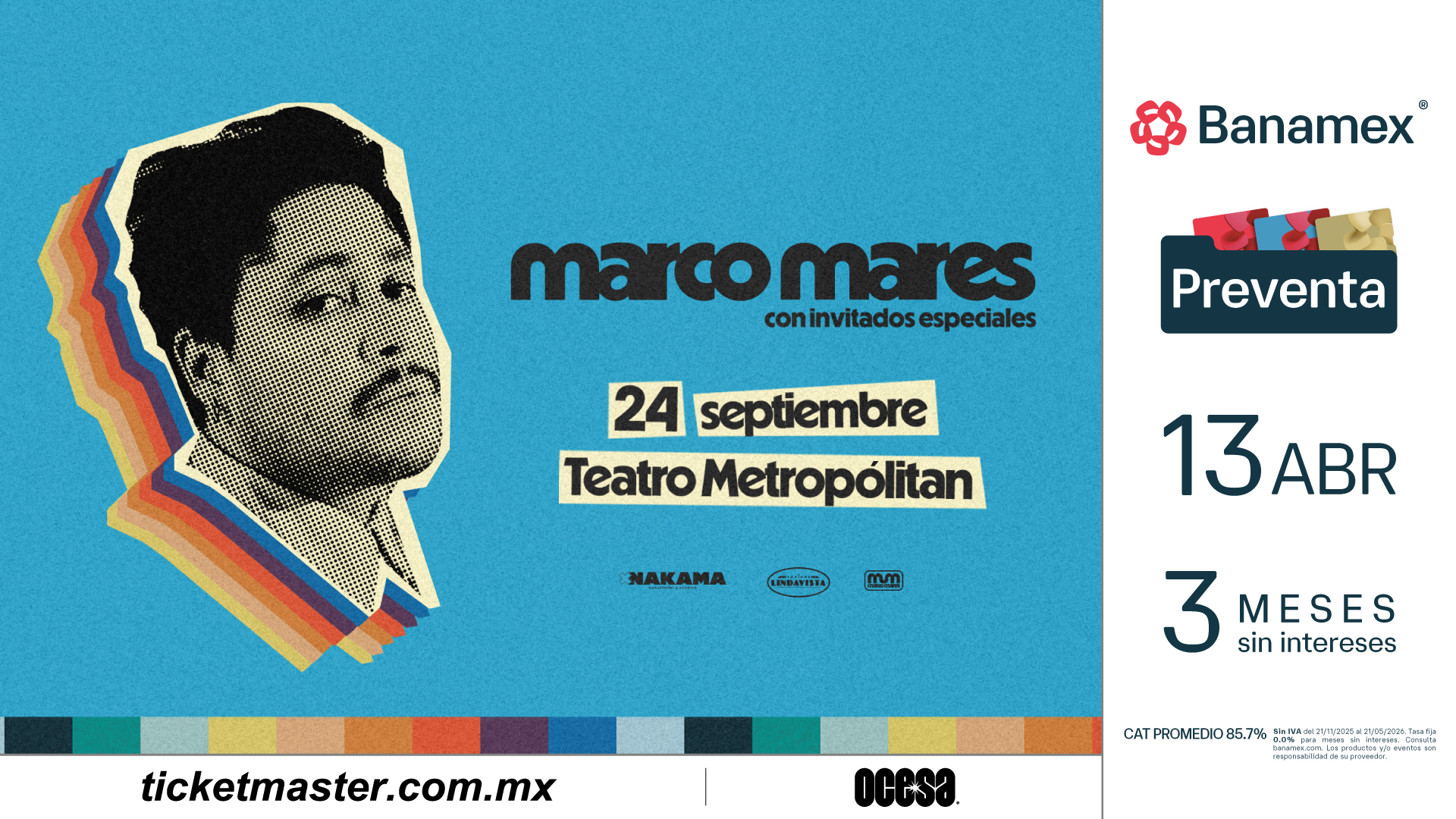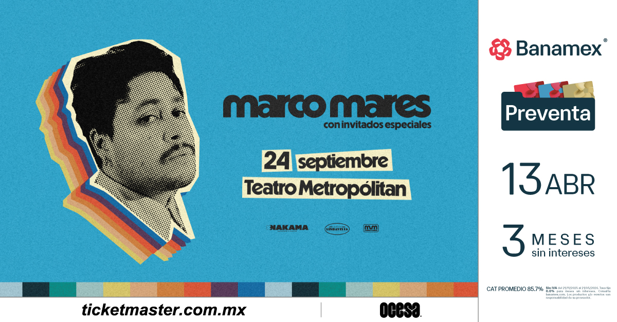 Esta presentación de Mares en el Teatro Metropólitan se perfila como uno de los momentos más importantes de su carrera, una cita imperdible para quienes han acompañado su camino y, también, para quienes están listos en descubrir la fuerza del talento chilango. La Preventa Banamex iniciará el 13 de abril a las 11:00 hrs, mientras que la venta general se liberará un día después, el 14 de abril a través de Ticketmaster o en la taquilla del inmueble.