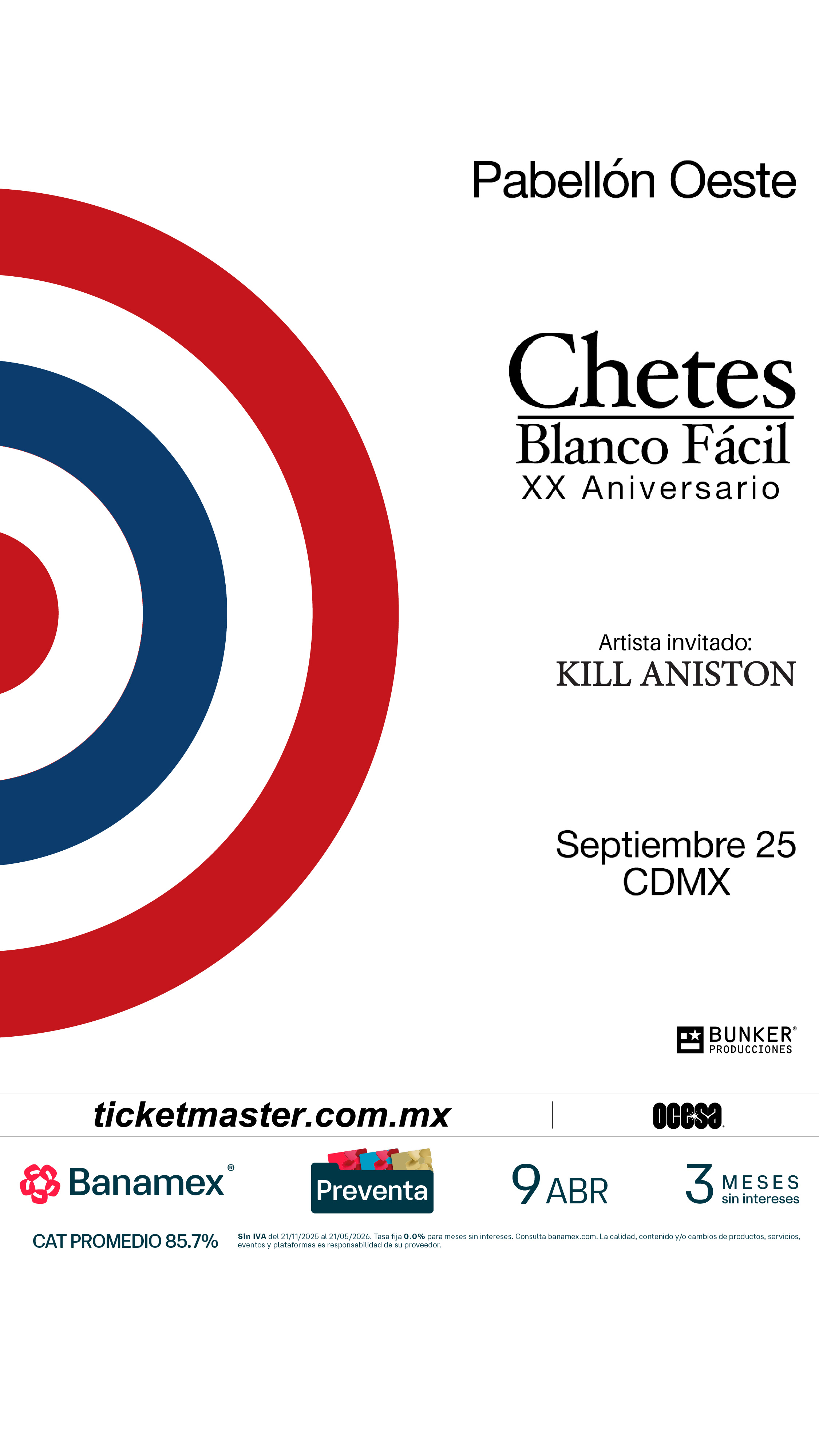 El eje central de este encuentro será la conmemoración de los 20 años de Blanco Fácil, un disco ya clásico del rock en México, que parece haber desafiado el paso del tiempo. Desde su lanzamiento, este álbum se convirtió en el vehículo que permitió a Chetes entrar de forma definitiva en el corazón de su audiencia, entregando éxitos que hoy son considerados testigos de la historia musical contemporánea. Revisitar este disco en vivo no es sólo un ejercicio de nostalgia, es una oportunidad para redescubrir la vigencia de una obra que fusionó la sensibilidad pop con la estructura del rock alternativo, consolidando a Chetes como una figura esencial de la industria.