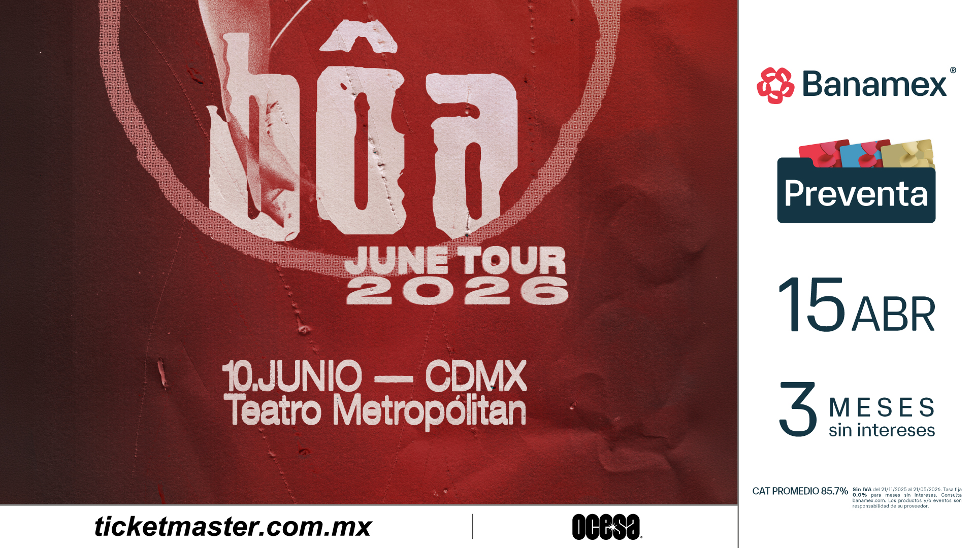 Conecta con el grupo que ha trasgredido la barrera intergeneracional, asegurando tus boletos durante la Preventa Banamex el 15 de abril o bien, en la venta general que se liberará un día después, el 16 de abril a través de Ticketmaster o en la taquilla del inmueble.