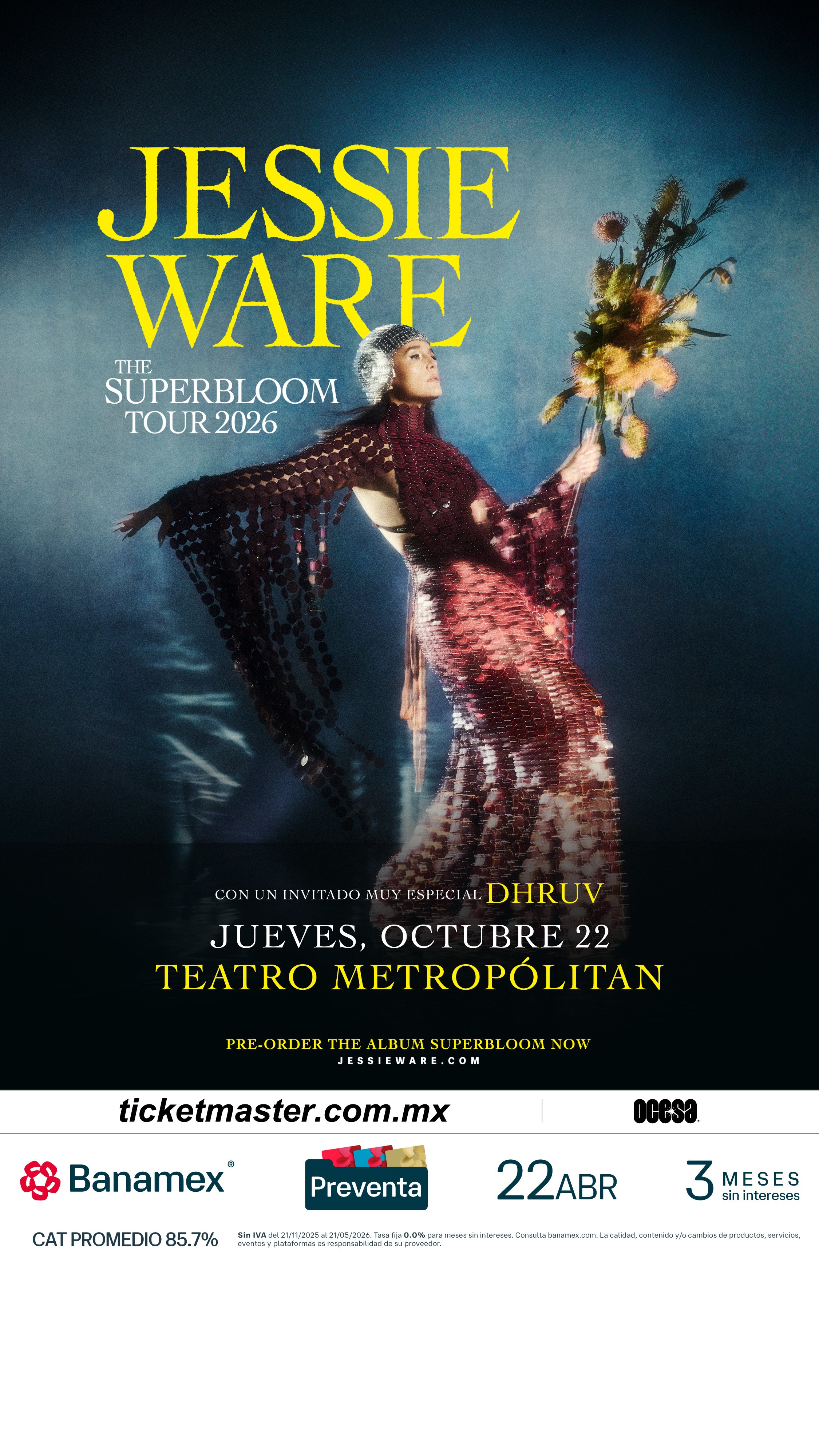 Con Superbloom y su gira en vivo más ambiciosa hasta el momento, Jessie Ware entra en una nueva era: segura, glamorosa y en pleno florecimiento.