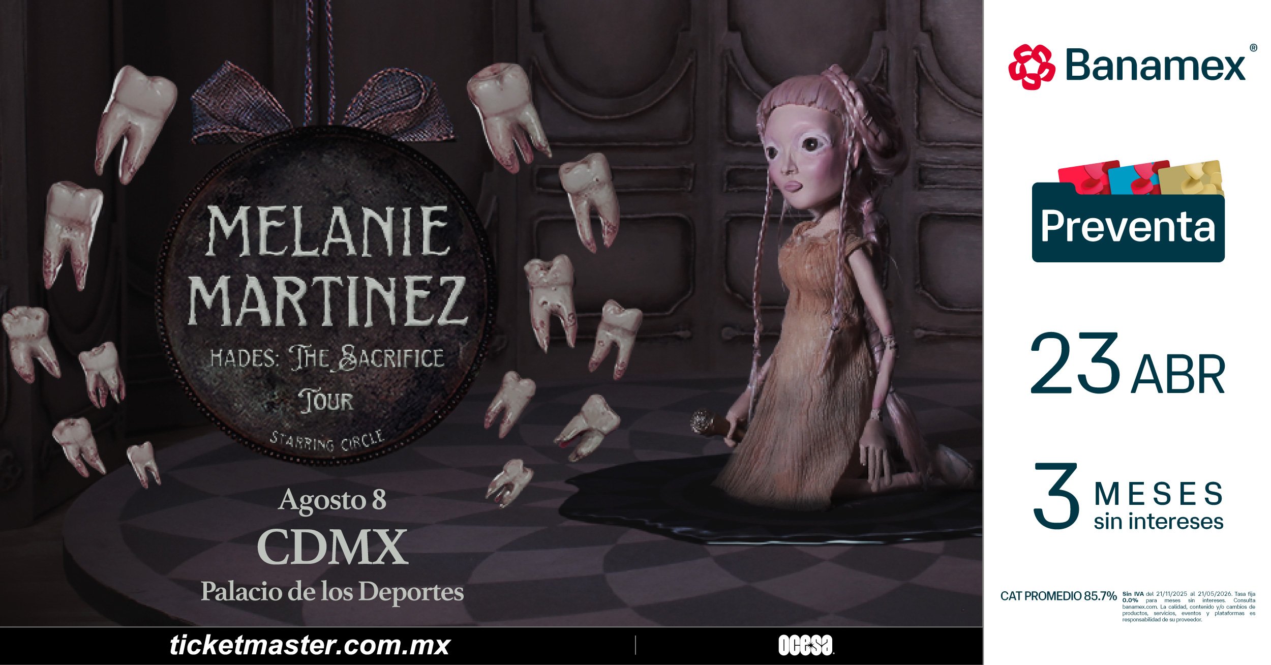 Jueves 16 de abril (Los Ángeles, CA). Hoy, la artista multiplatino y polímata creativa Melanie Martinez, anuncia HADES: THE SACRIFICE, su nueva gira por Norteamérica y Europa en apoyo a HADES, su cuarto álbum de estudio. Producida por Live Nation, la gira global comenzará con una primera etapa por Norteamérica y México este verano, antes de cruzar el Atlántico para una serie de conciertos en arenas del Reino Unido y Europa. Consulta a continuación el itinerario completo y la información de boletos.