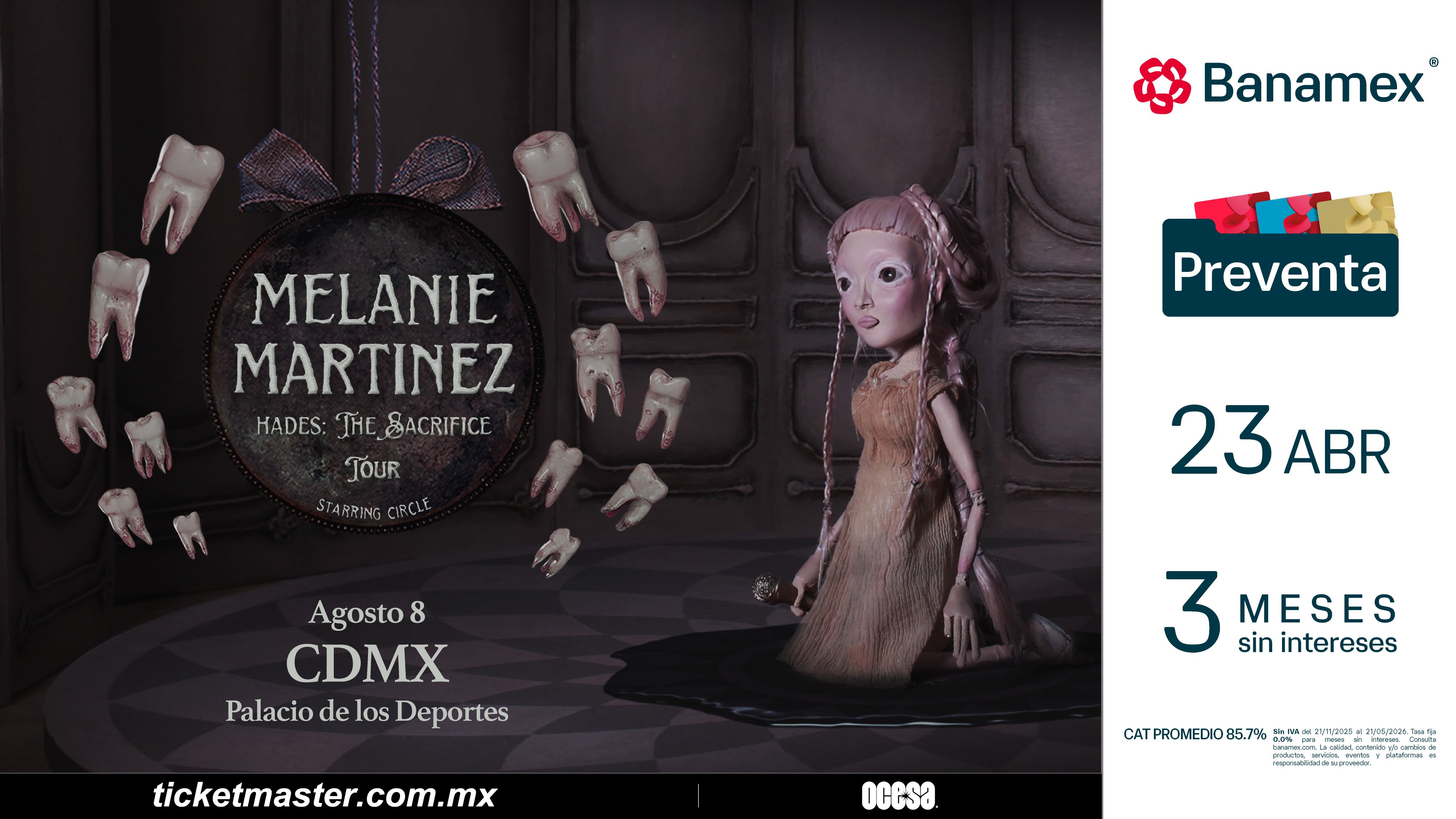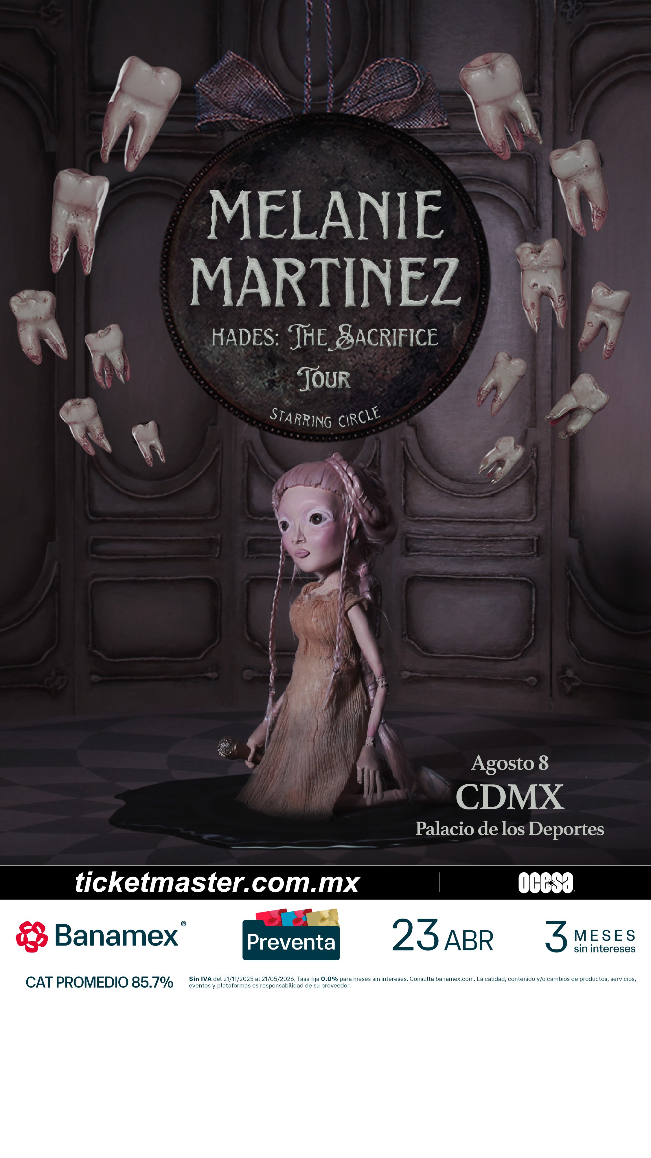 El anuncio sigue al lanzamiento impulsado por los fans de HADES, que Melanie presentó a través de una serie de experiencias de escucha con boletos agotados en Londres, Ámsterdam y Toronto. Concebidos como avances inmersivos del universo del álbum, estos eventos acercaron a los fans más que nunca a la música, visión que Melanie amplió posteriormente con presentaciones íntimas en Nueva York, Ciudad de México y Los Ángeles, donde debutó el álbum en vivo con banda completa y sección de cuerdas. HADES: THE SACRIFICE marca su primera gran gira desde 2024, año en el que agotó los recintos más grandes de su carrera, incluyendo dos noches en el Madison Square Garden de Nueva York y The O2 de Londres, además de encabezar festivales de renombre como Lollapalooza y Corona Capital.