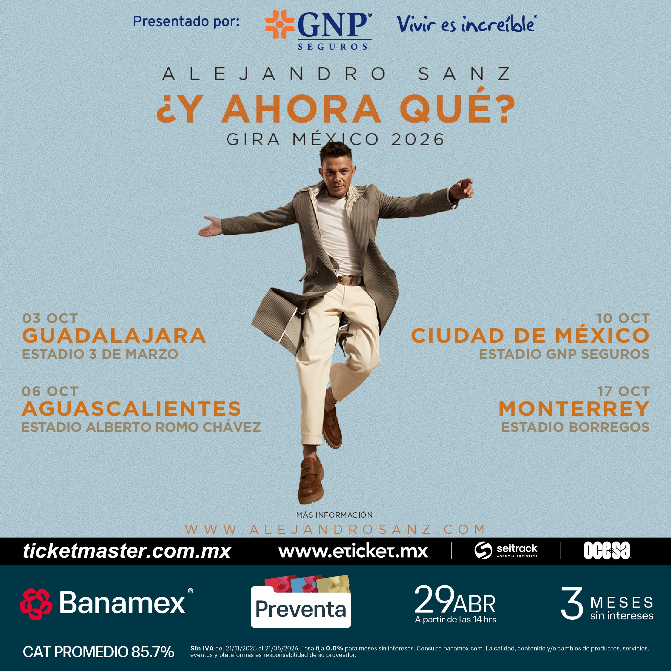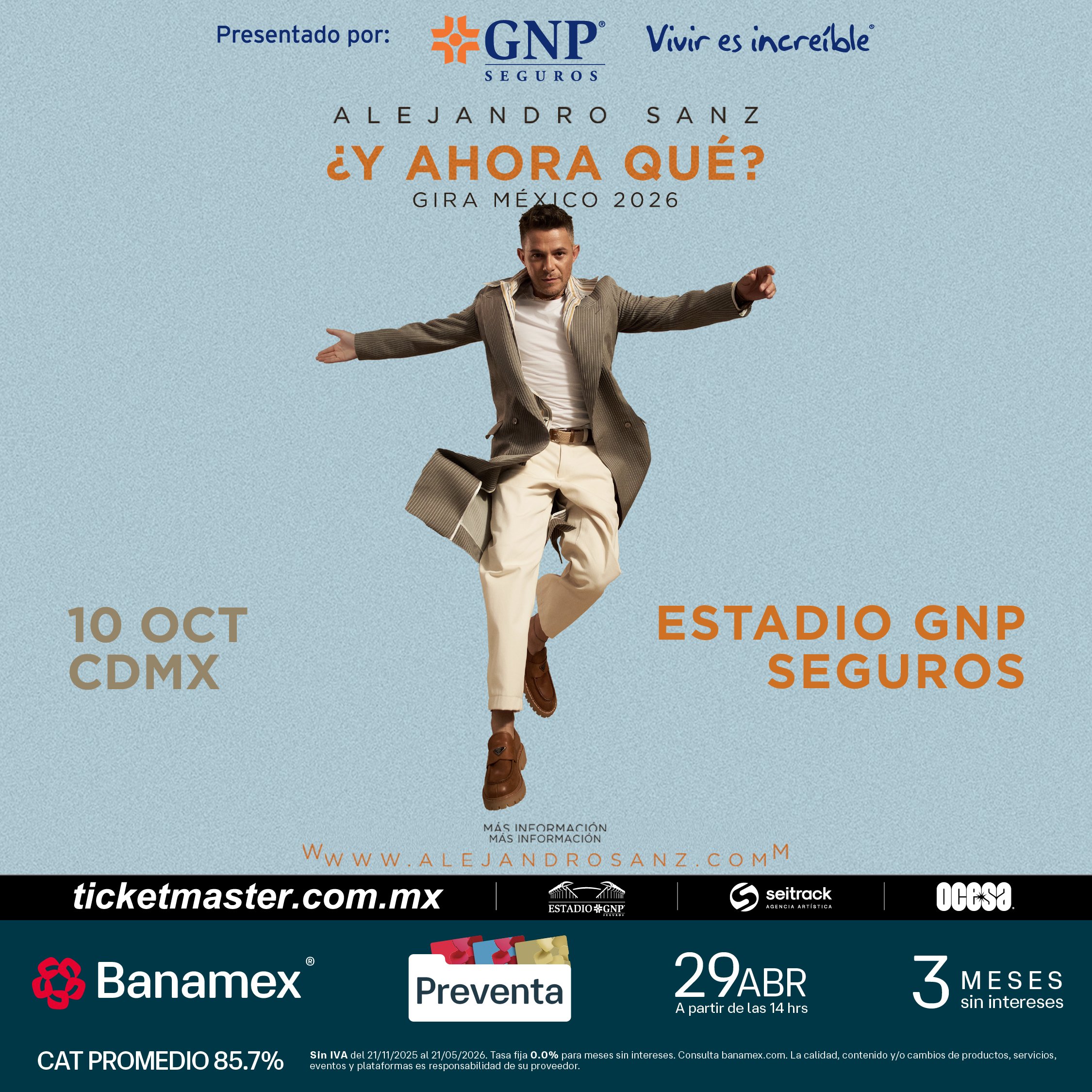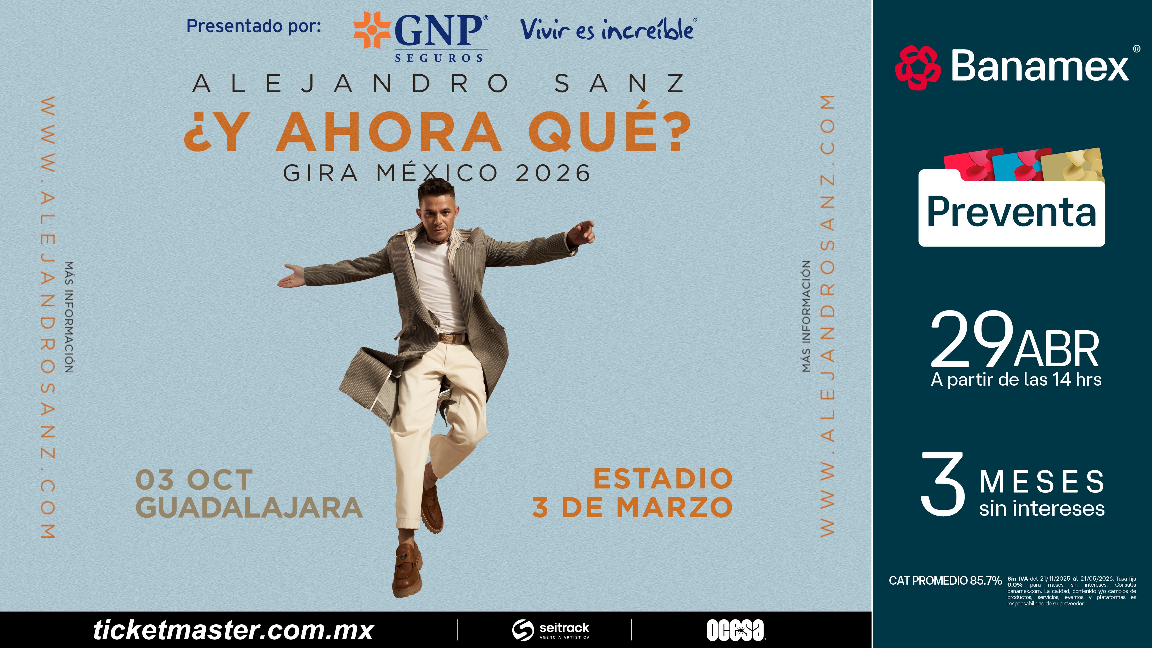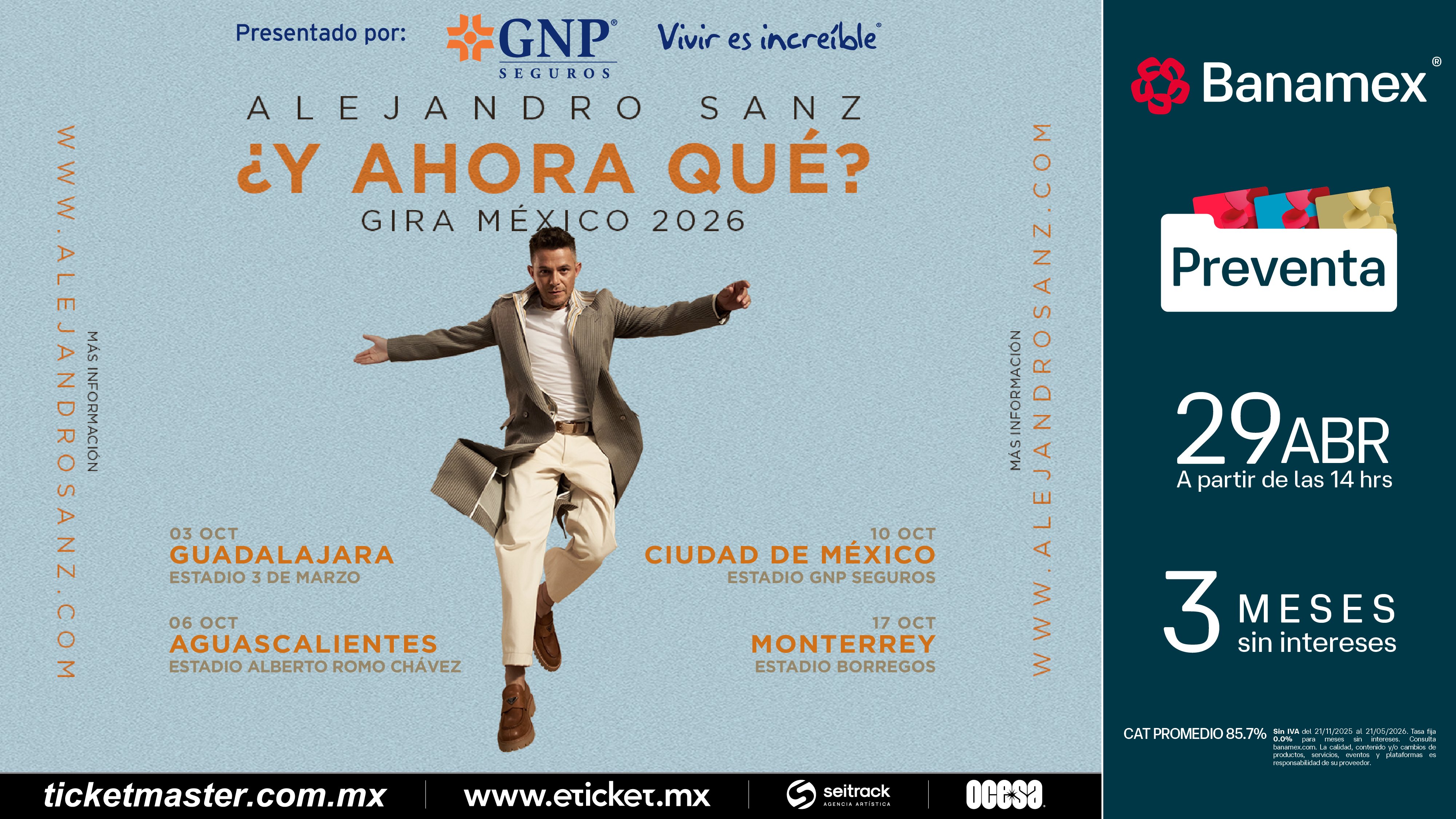Preventa Banamex: 29 de abril, 2:00 p.m.