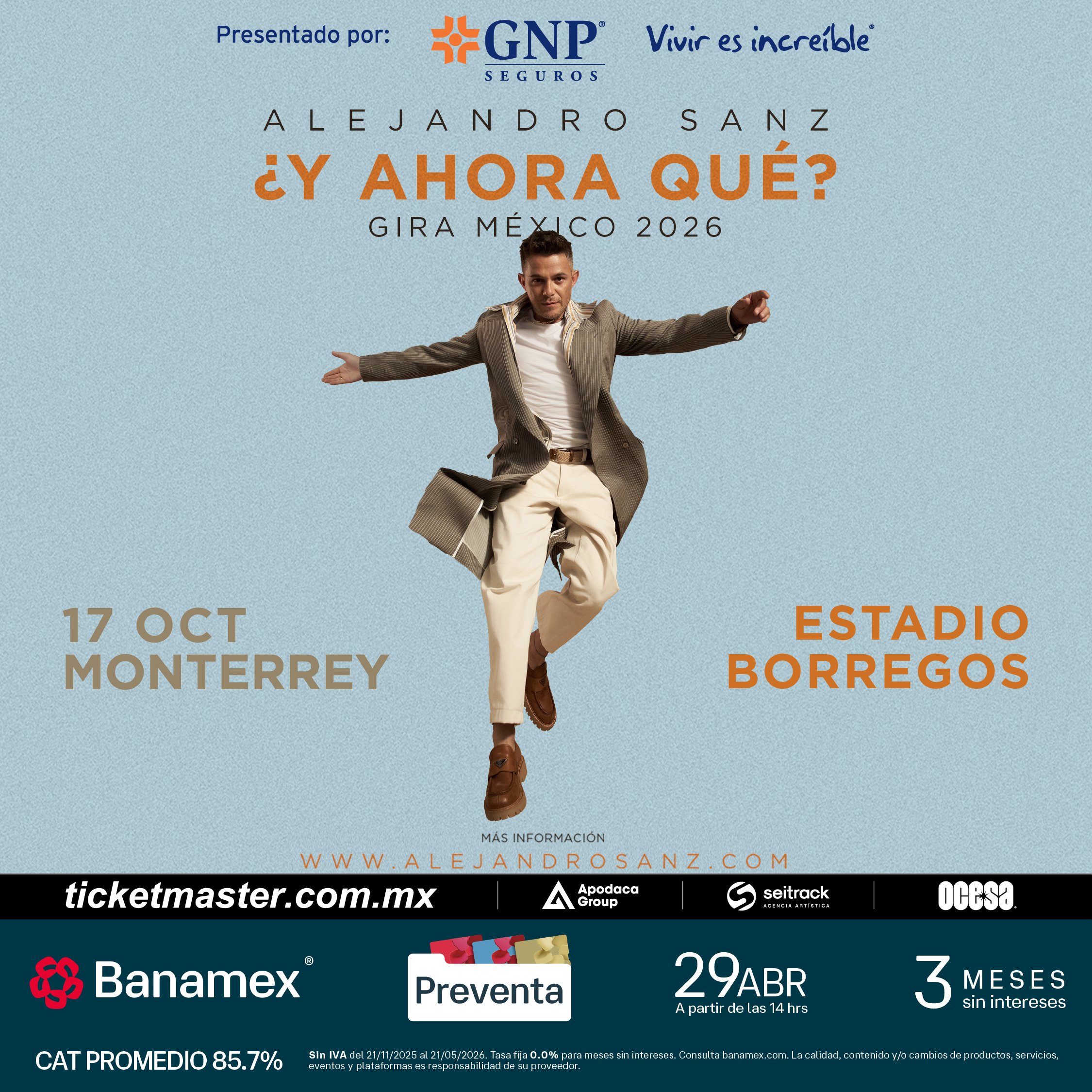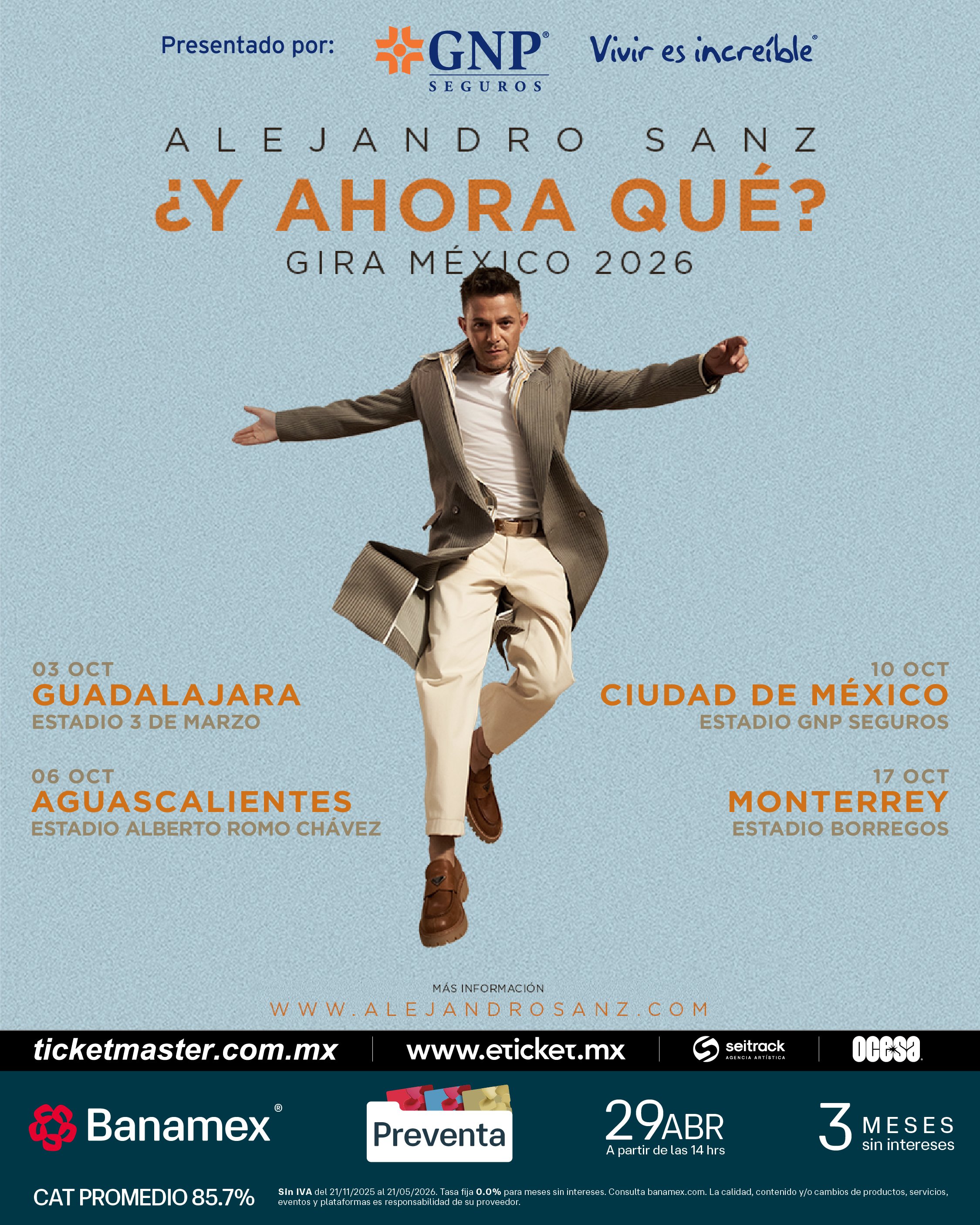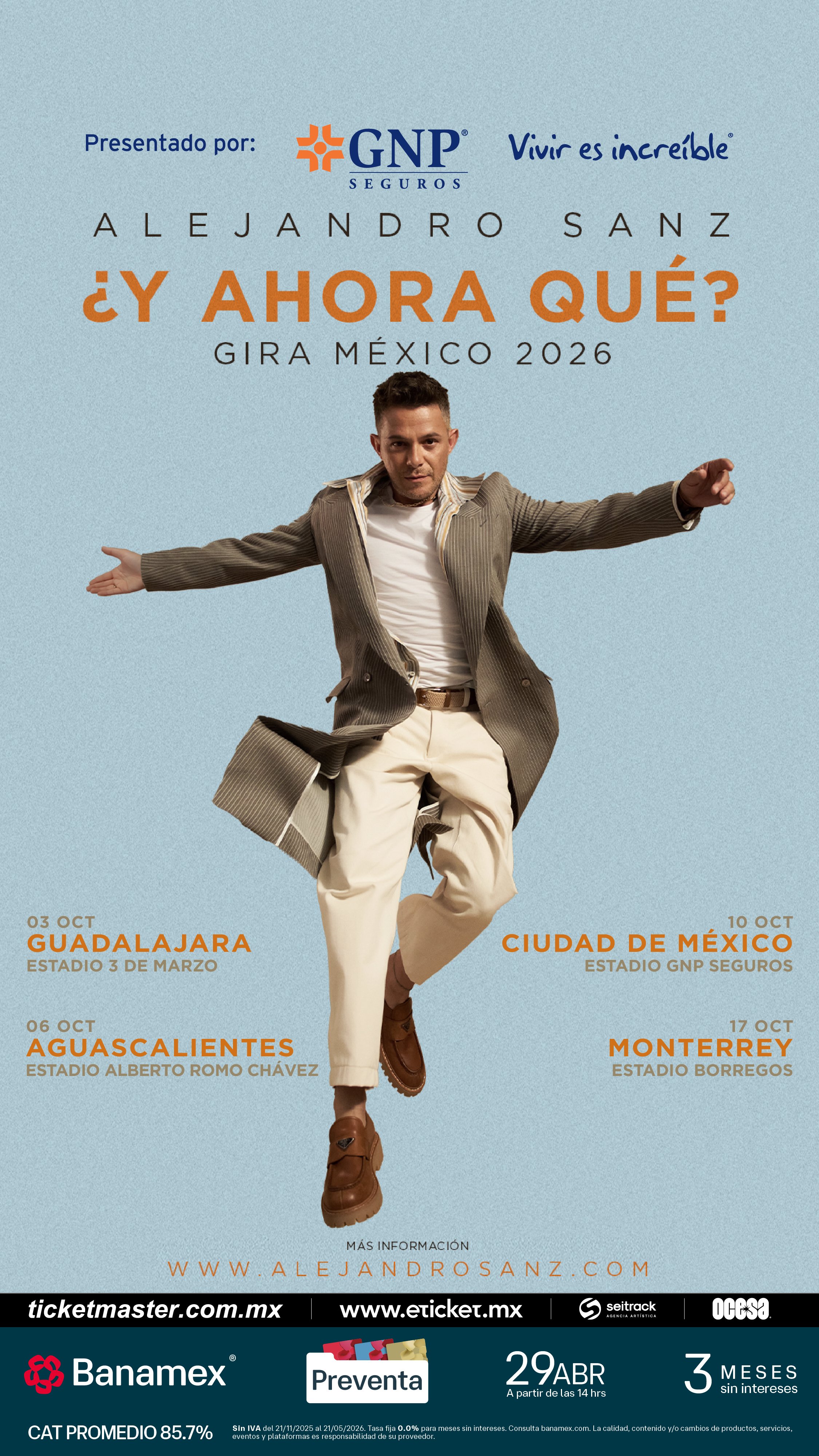 Preventa Banamex: 29 de abril, 2:00 p.m.