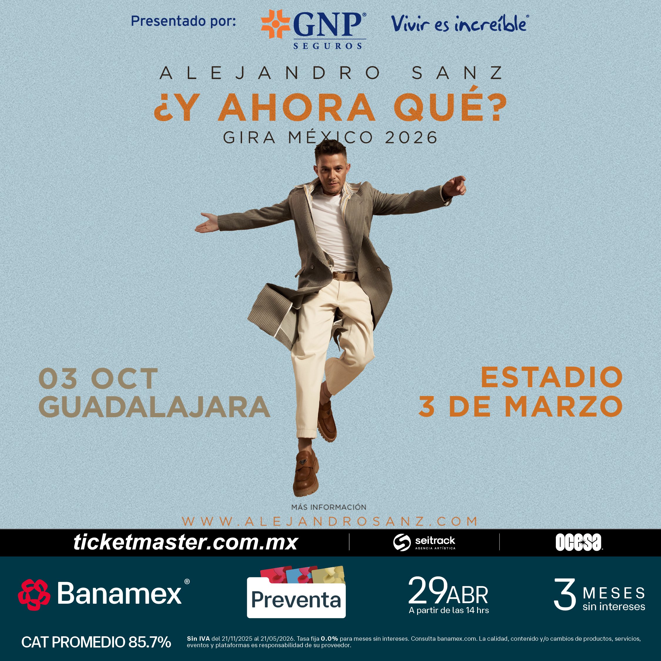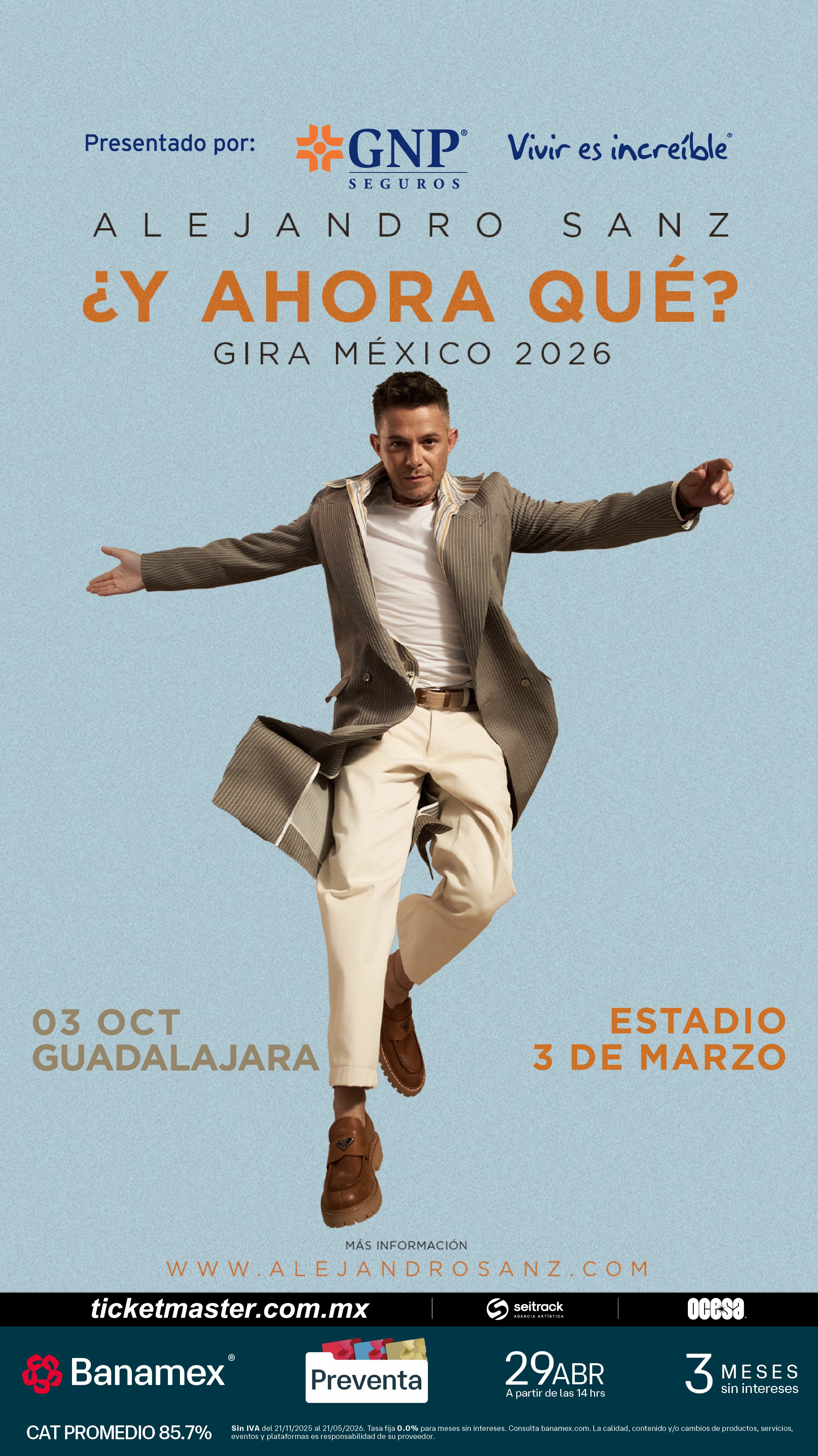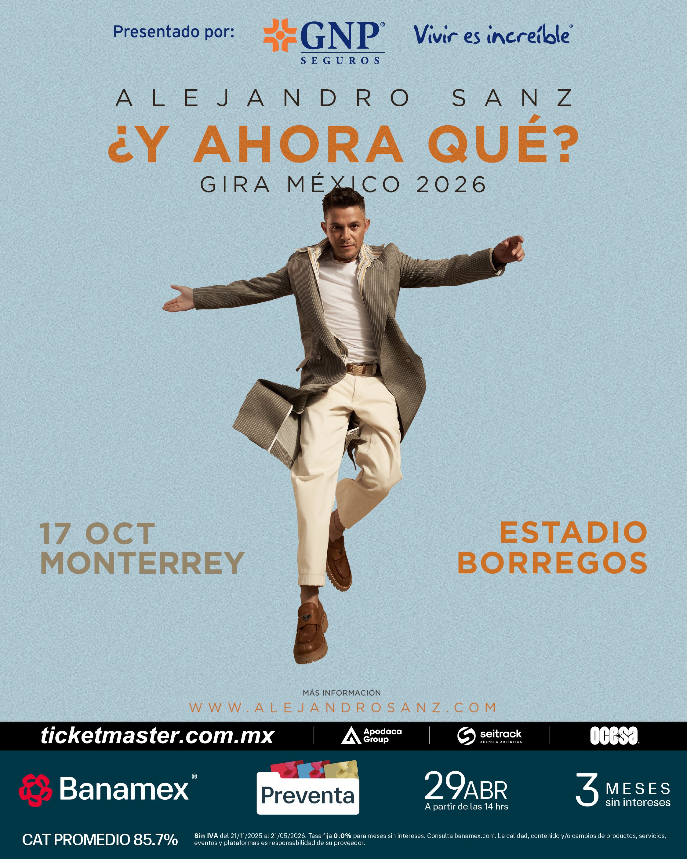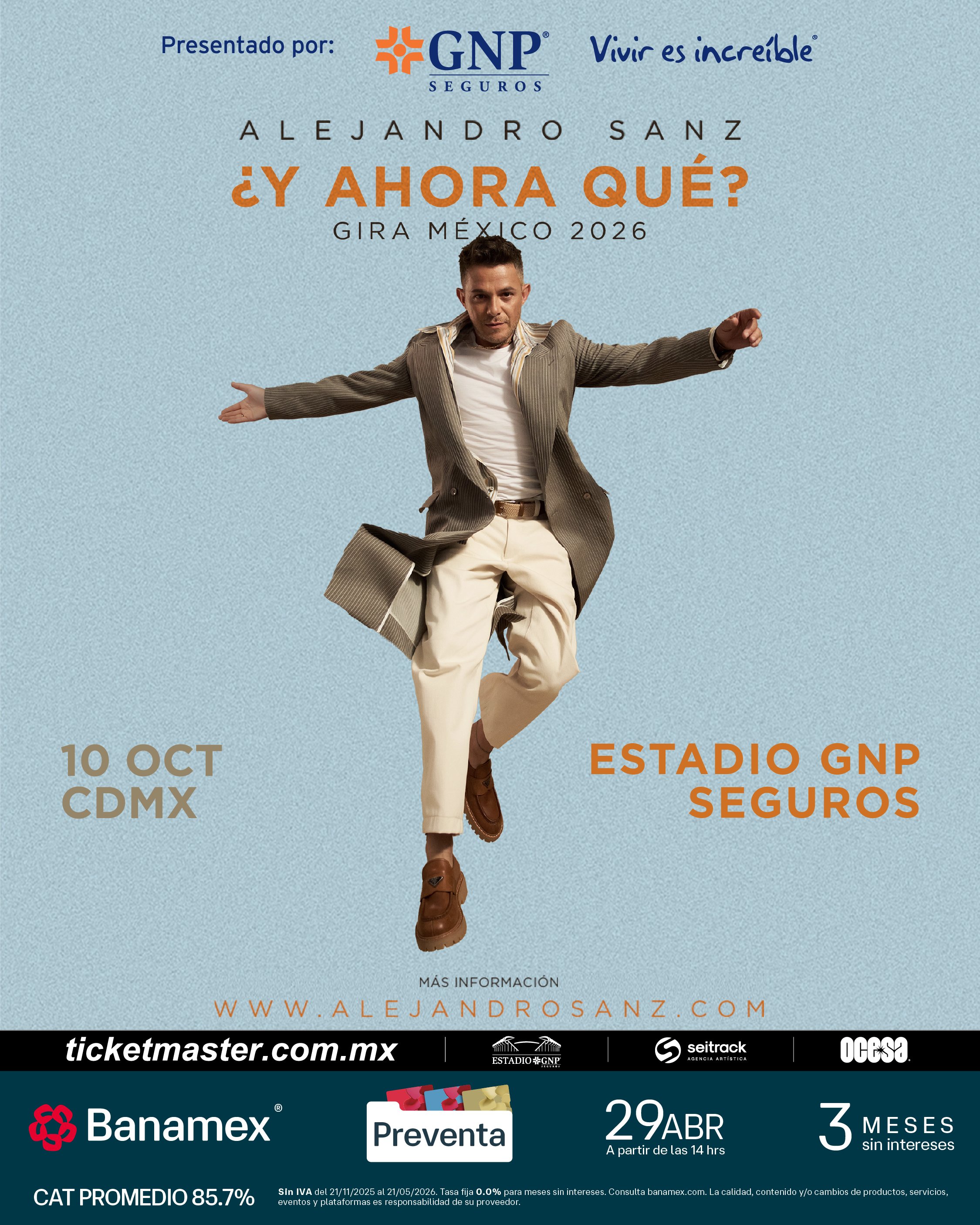 Preventa Banamex: 29 de abril, 2:00 p.m.
