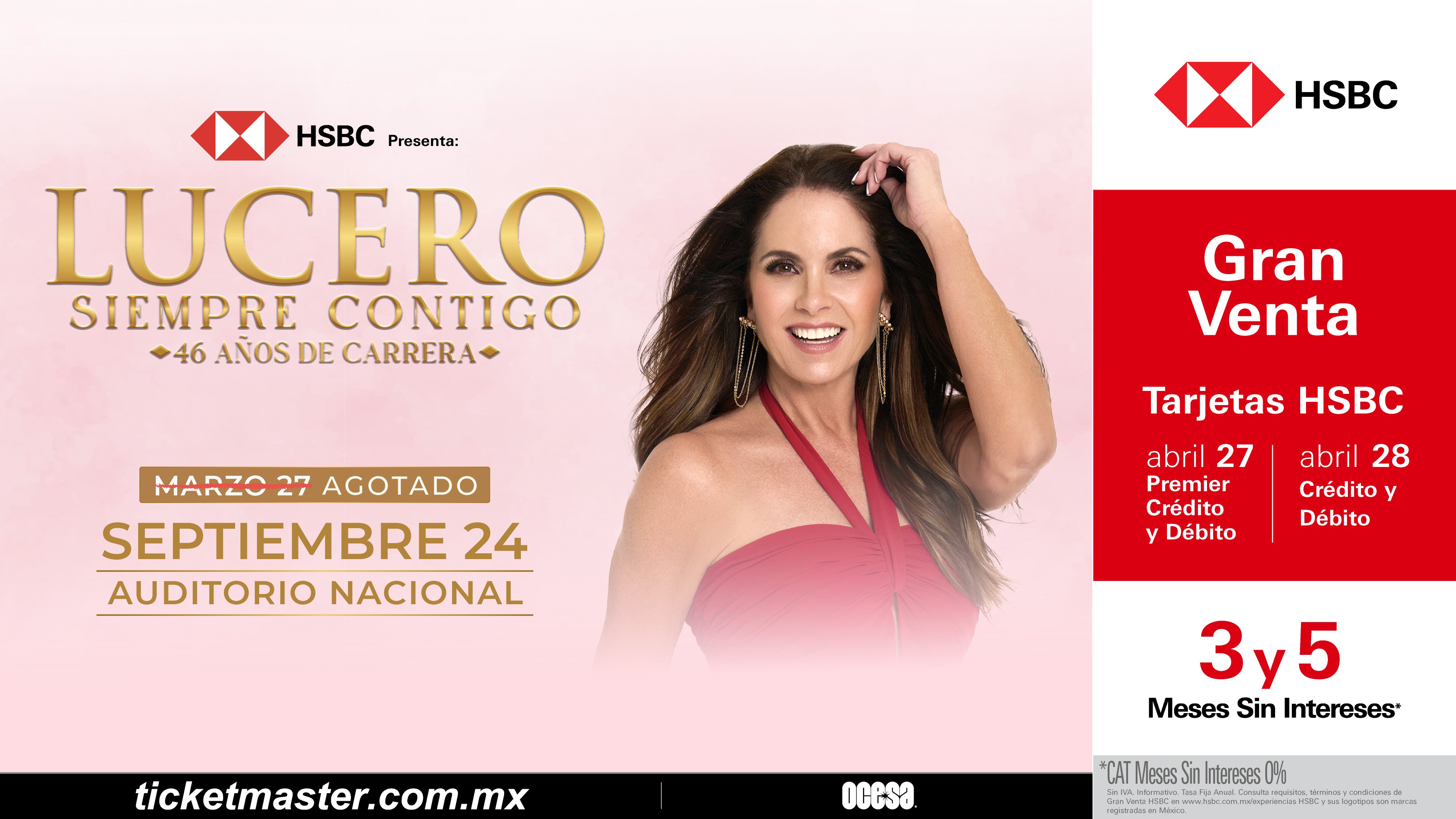 Como presentador oficial de esta gira, HSBC continúa ofreciendo ventajas exclusivas para que nadie se pierda este festejo. Los tarjetahabientes podrán acceder a la Gran Venta HSBC los días 27 y 28 de abril a partir de las 11:00 a.m.,