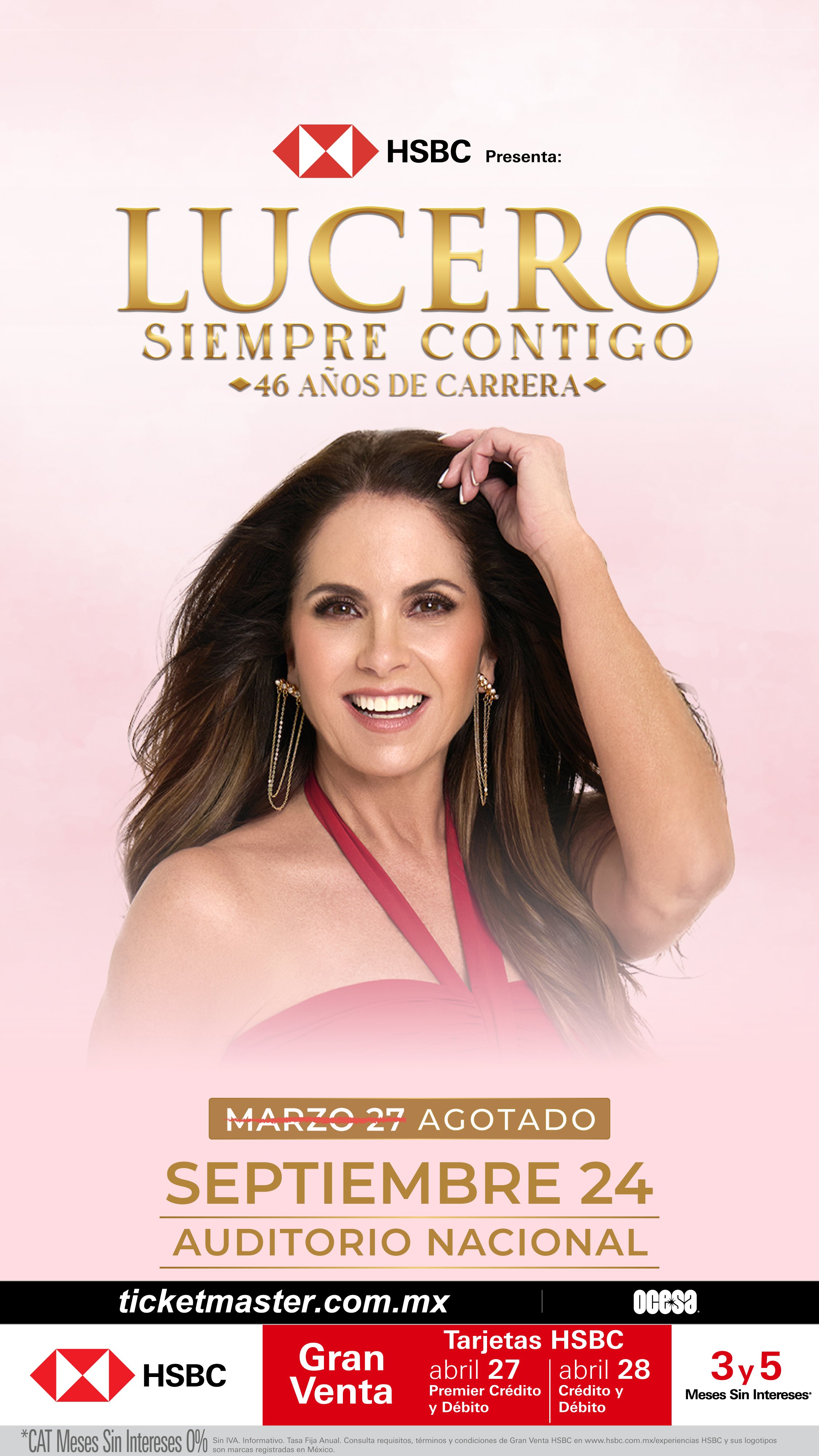 Debido al abrumador éxito y al cariño inagotable de su público, la celebración por las cuatro décadas y media de carrera de Lucero suma un nuevo capítulo. El próximo 24 de septiembre, el Auditorio Nacional volverá a abrir sus puertas para recibir el tour SIEMPRE CONTIGO, un show producido con absoluta entrega para agradecer a los seguidores que han caminado junto a ella desde sus inicios. Esta nueva fecha es la respuesta directa a una audiencia que se niega a quedar fuera de lo que ya se perfila como uno de los eventos más emotivos y memorables del 2026.