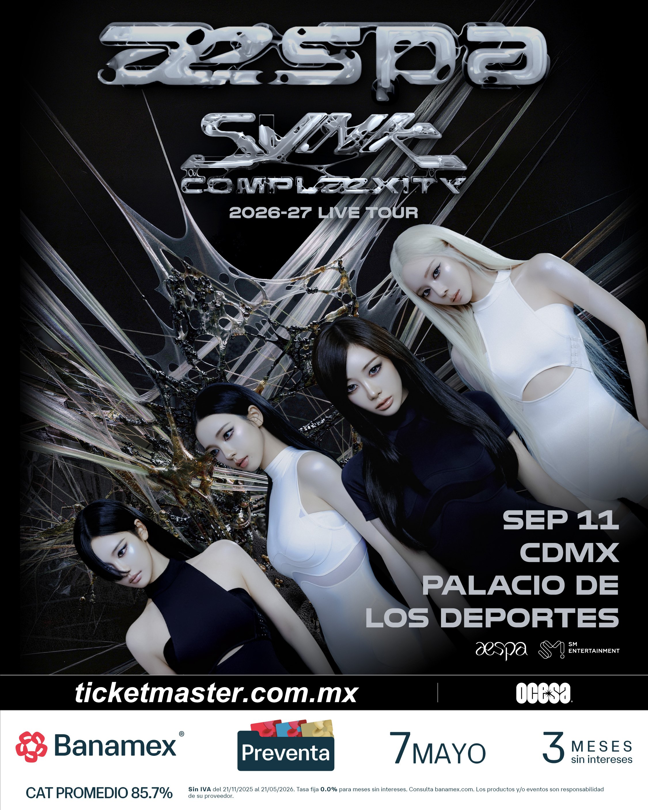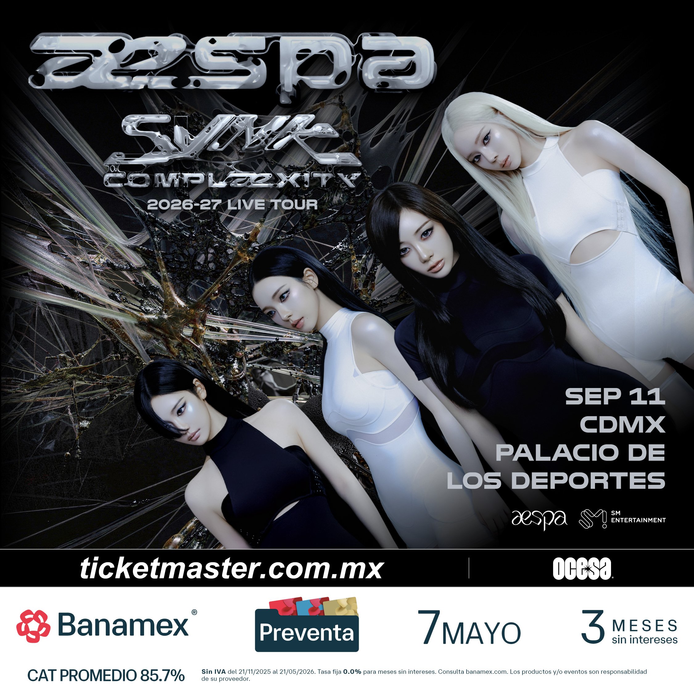 Hoy, la fuerza global del K‑pop, aespa (SM Entertainment), reveló todos los detalles de su próxima gira mundial, 2026‑27 aespa LIVE TOUR – SYNK : COMPLæXITY. Producida por Live Nation, la gira llevará la aclamada producción en vivo de aespa y su experiencia escénica inmersiva a arenas de Asia, Norteamérica, Latinoamérica, el Reino Unido y Europa. El tour arrancará el 7 de agosto en Seúl e incluirá paradas en UBS Arena en Belmont Park, Nueva York, el 18 de septiembre, así como en Intuit Dome en Los Ángeles, California, el 3 de octubre. El itinerario completo se detalla más abajo.