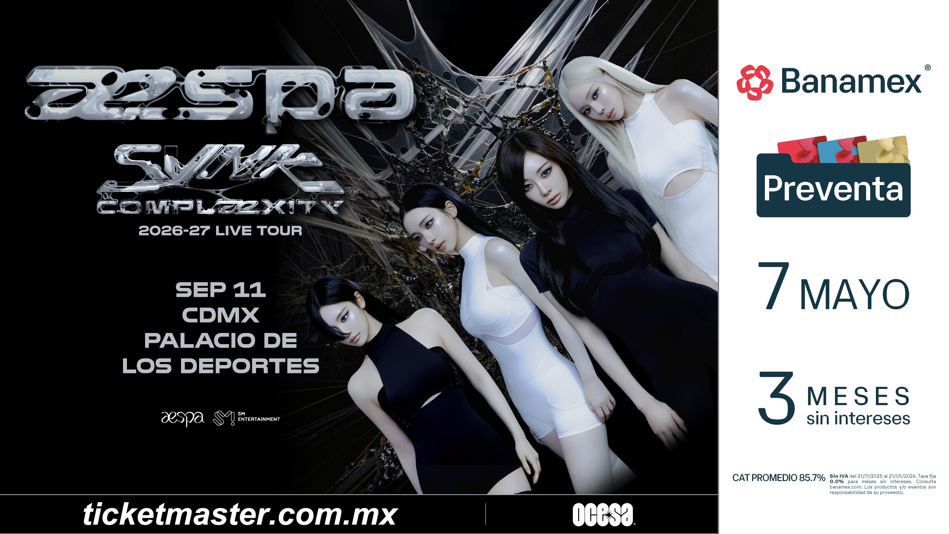 11 de septiembre – Palacio de los Deportes Preventa Banamex: 7 de mayo
