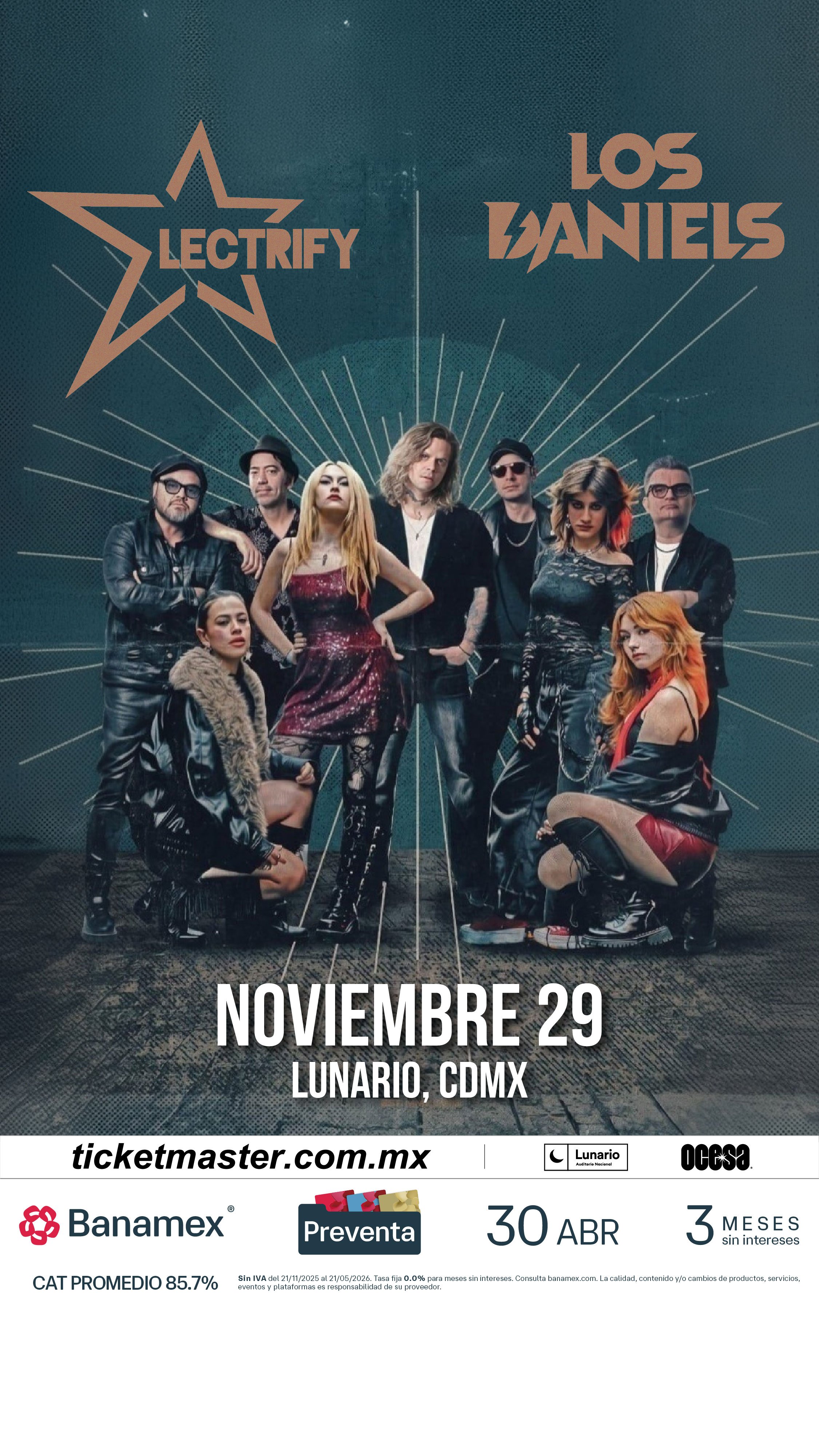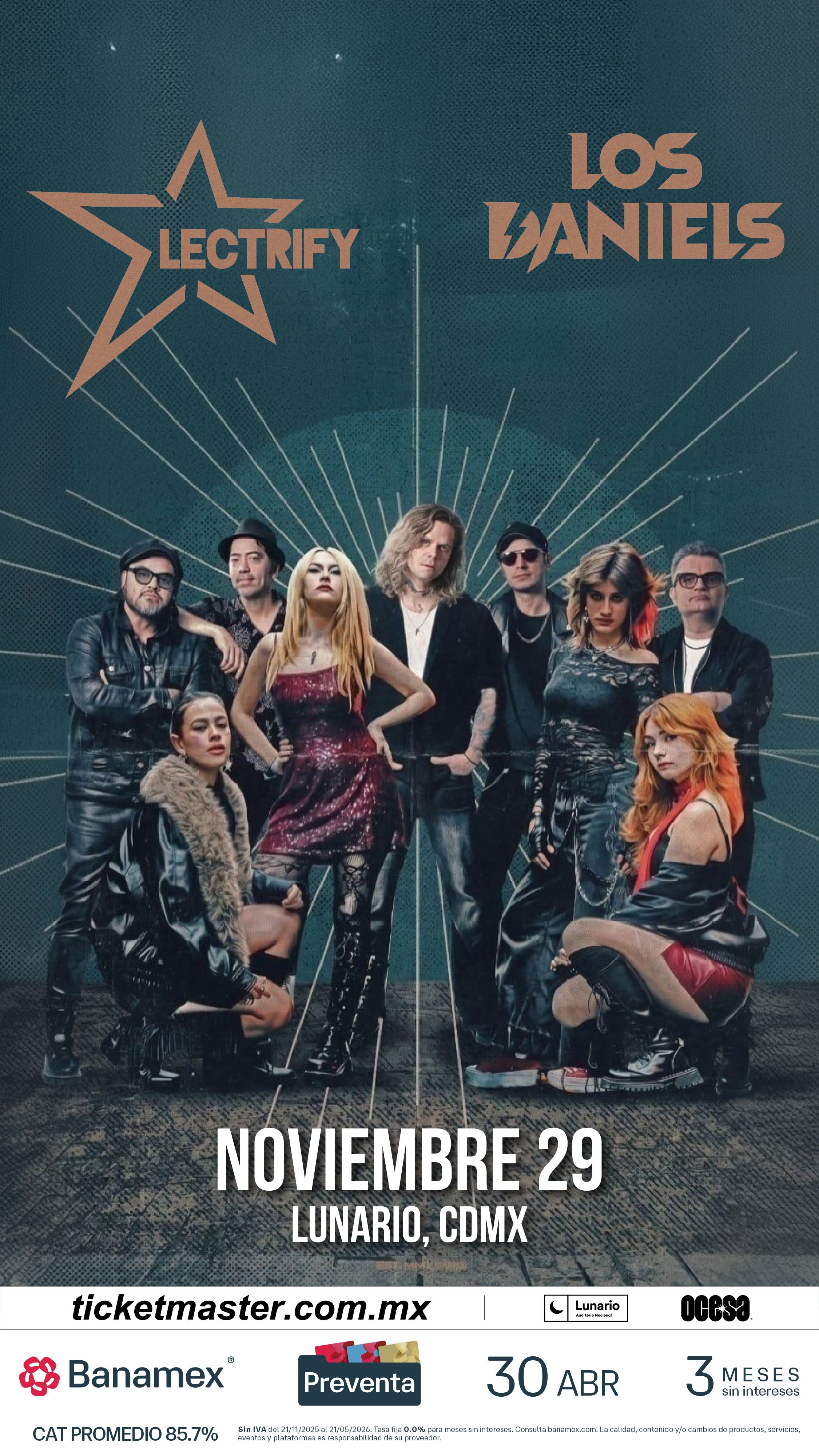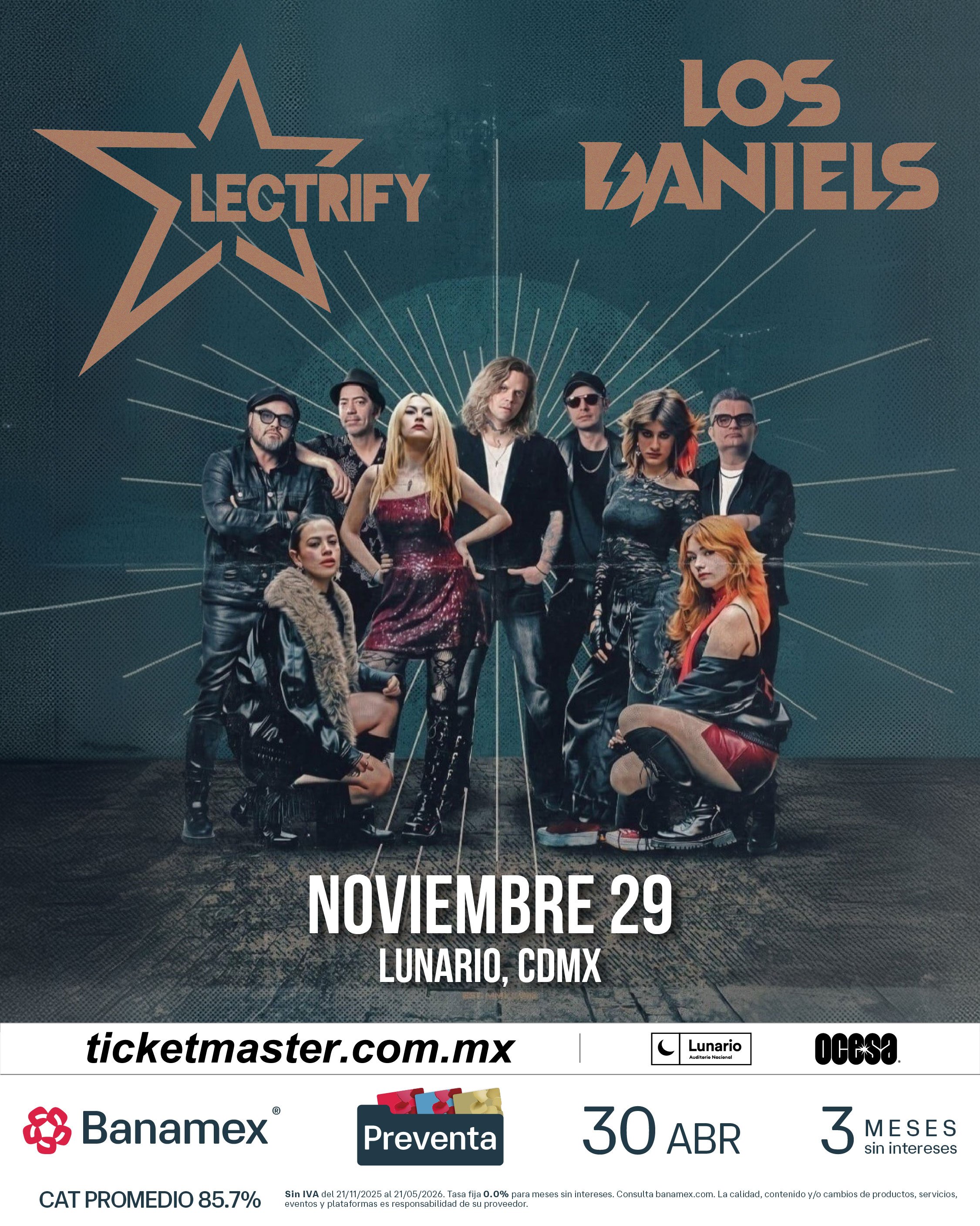 La energía y las emociones intensas se encontraron para dar vida a un show único. Electrify y Los Daniels, compartirán el escenario en un concierto especial donde convergen dos propuestas, una ya bien posicionada que ha marcado el pulso del rock contemporáneo en México y la otra, que viene a darle su propio toque a lo que conocemos. Una noche diseñada para cantar, saltar y dejarse llevar por el poder de la música en vivo.